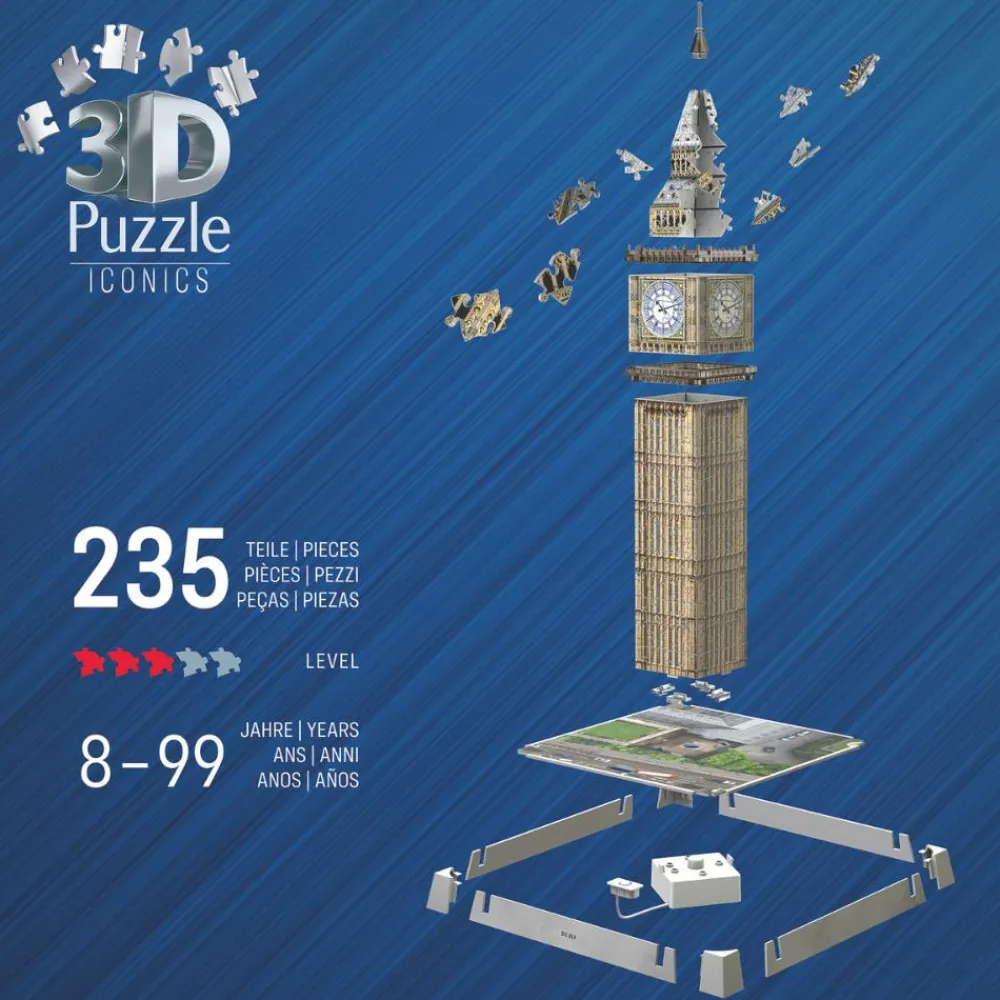 Big Ben hedder i virkeligheden Elizabeth tower. Og her kan klokketårnet, du kender fra London, samles hjemme hos dig af 216 brikker med nummerering på bagsiden.