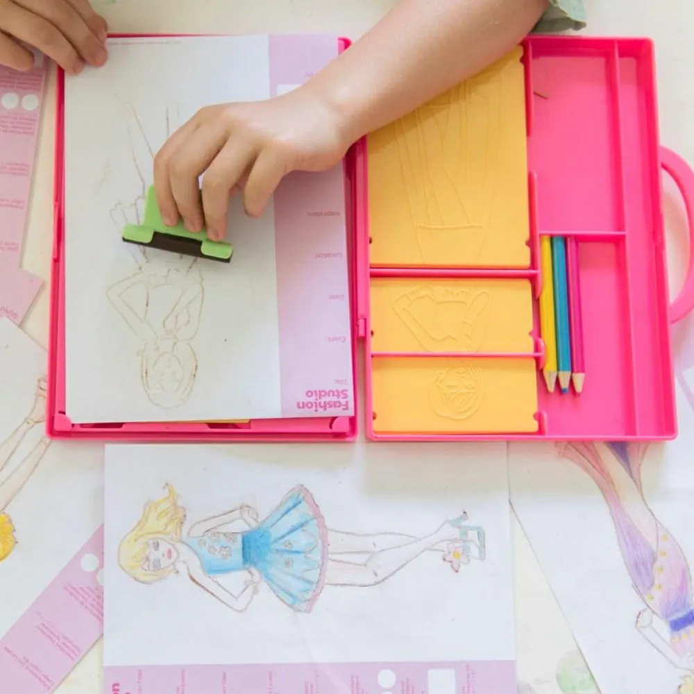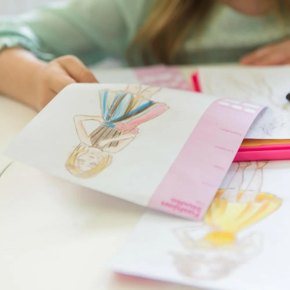 Læg design-værkstedet frem til dit barn sammen med forskellige farveblyanter, farvekridt og papir i forskellige tykkelser. Derefter kan du observere dit barn lære sig selv at bruge design værkstedet og få modellen og tøjet frem på sit eget niveau.