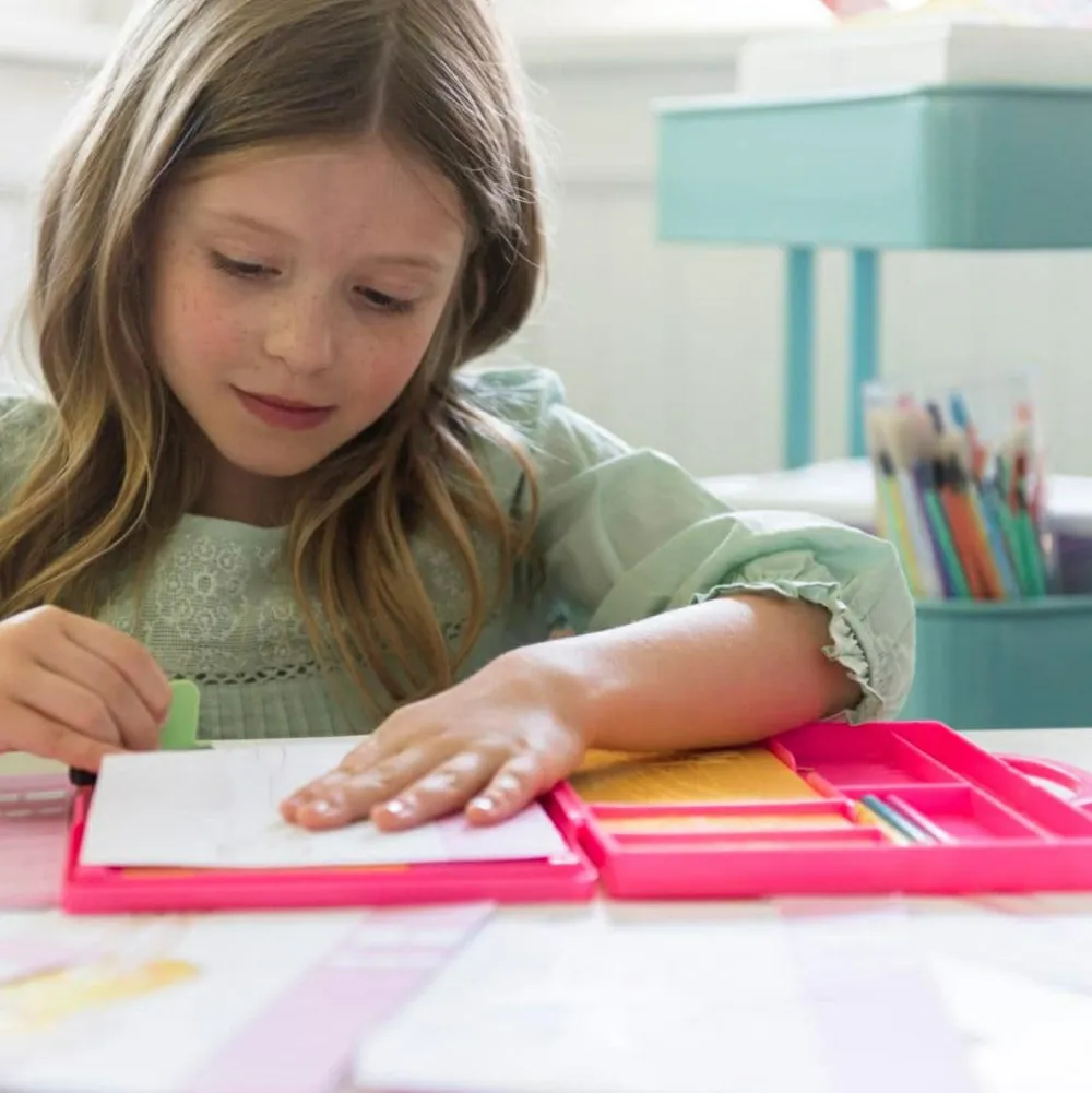 Design sættet med gnideplader er desuden oplagte til at træne dit barns taktile sans (følesansen), imens dit barn holder farverne mod pladerne og mærker, hvor der skal skraveres. Vidste du, at den taktile sans faktisk er vigtig for vores kommunikation og sociale relationer? Og at børn både kan være under- og overstimulerede på den taktile sans og have særligt brug for stimuli i sit eget niveau? Det kan du læse mere om i vores blogindlæg her.