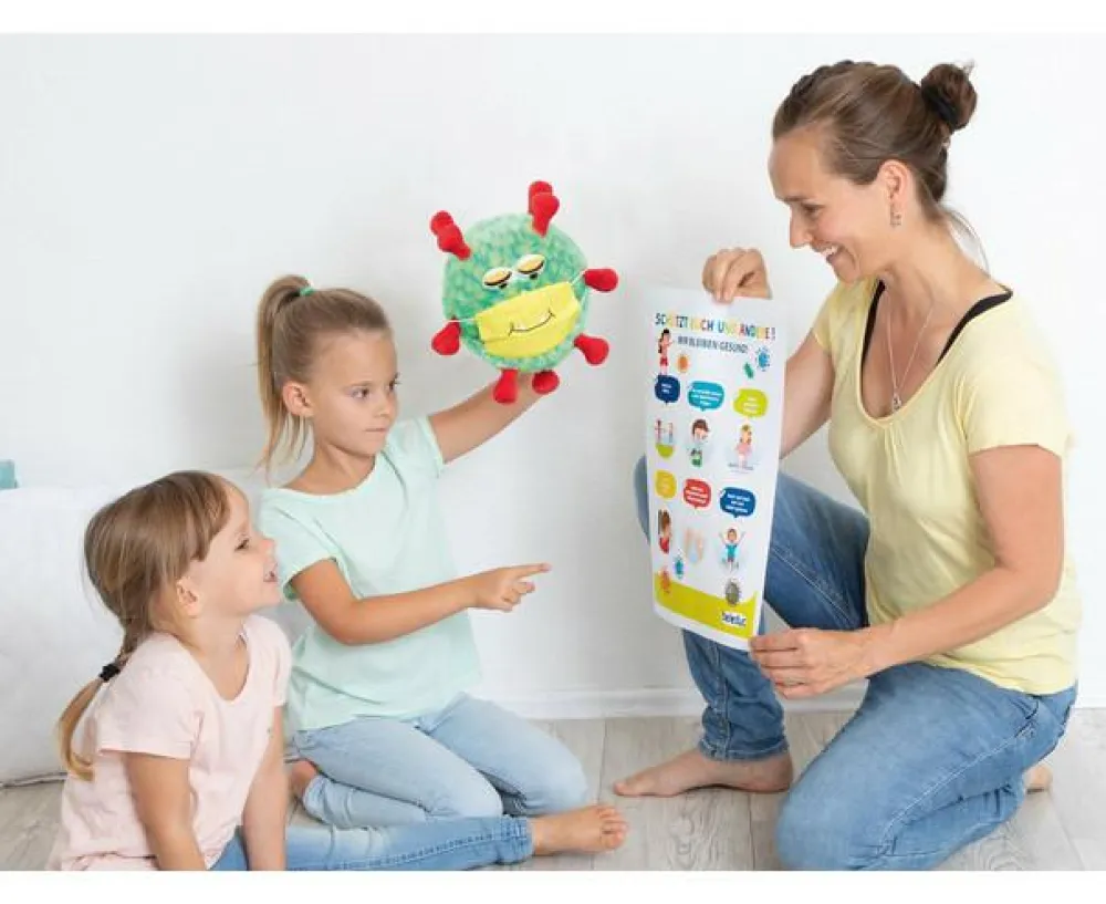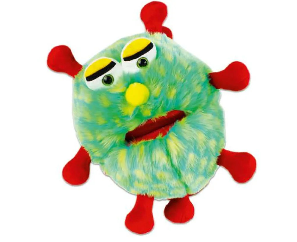 En sjov dukke med mundbind på, som er god til at tydeliggøre alt om brug af mundbind og hygiejne.