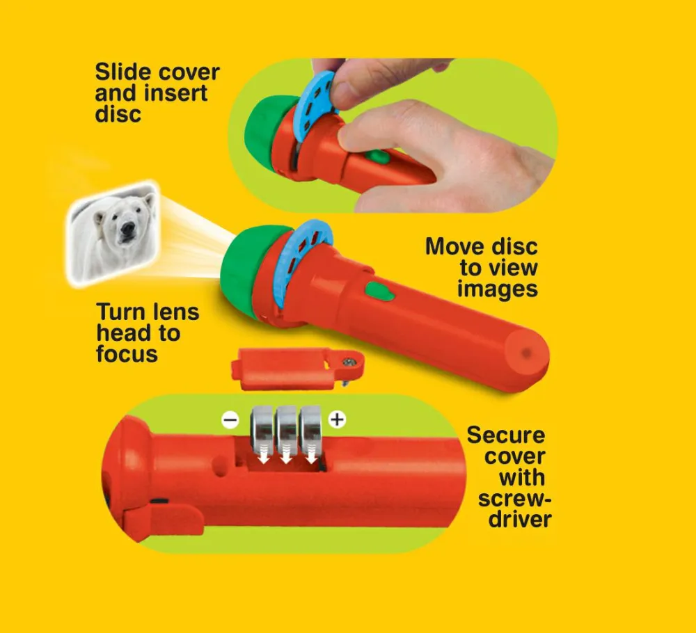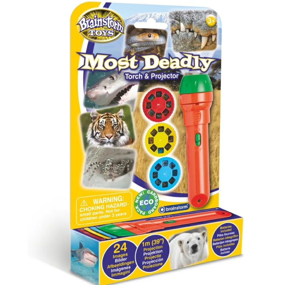 Kan dit barn navnene på alle dyrene på billederne? Sej lommelygte, som kan vise 24 flotte billeder af farlige dyr.