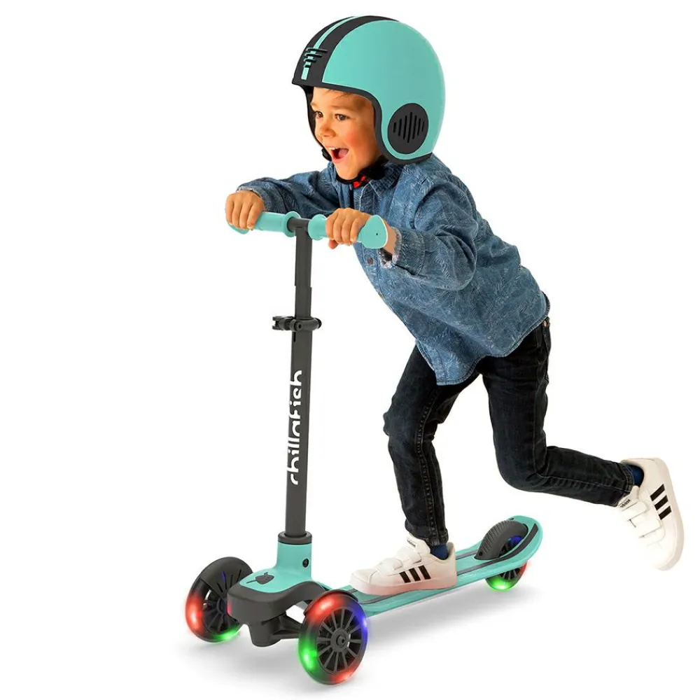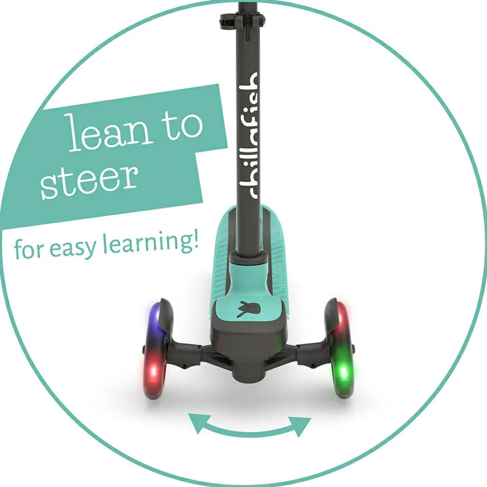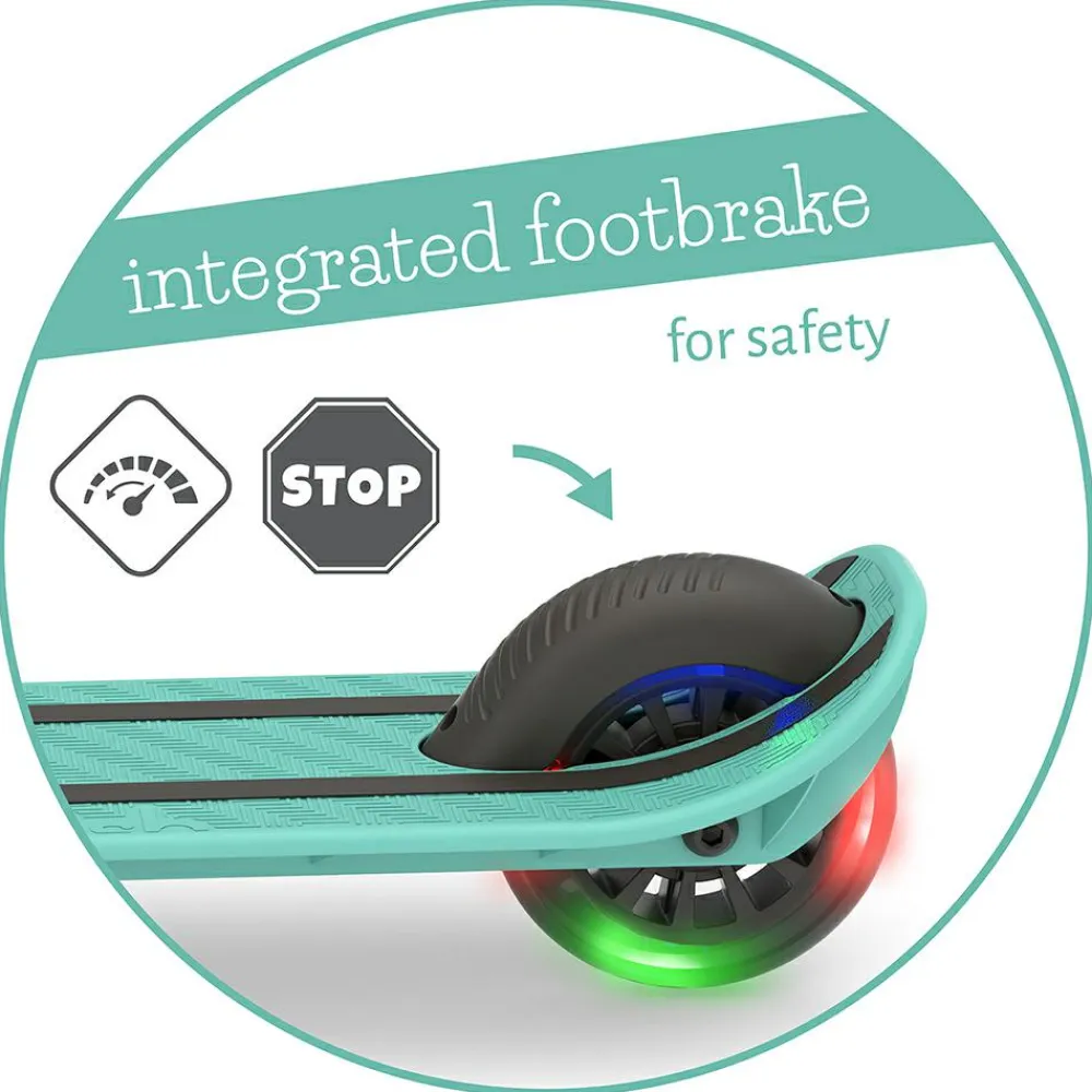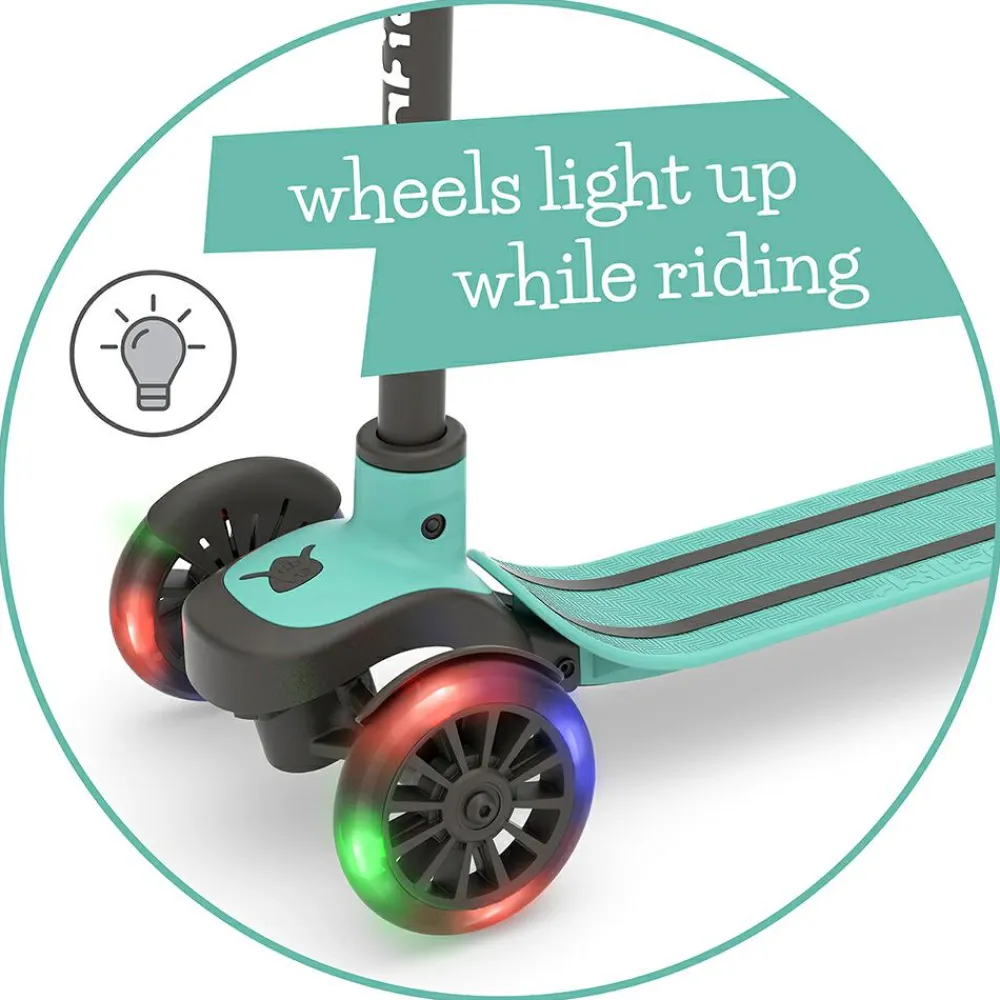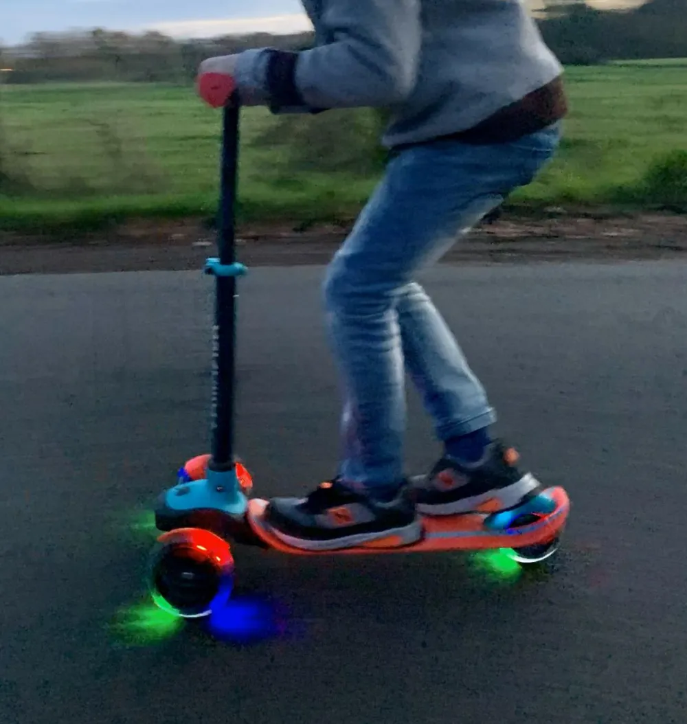 LED-lysene i hjulene fungerer uden batteri og gør løbehjulet sjovt at bruge også i vintermørke.