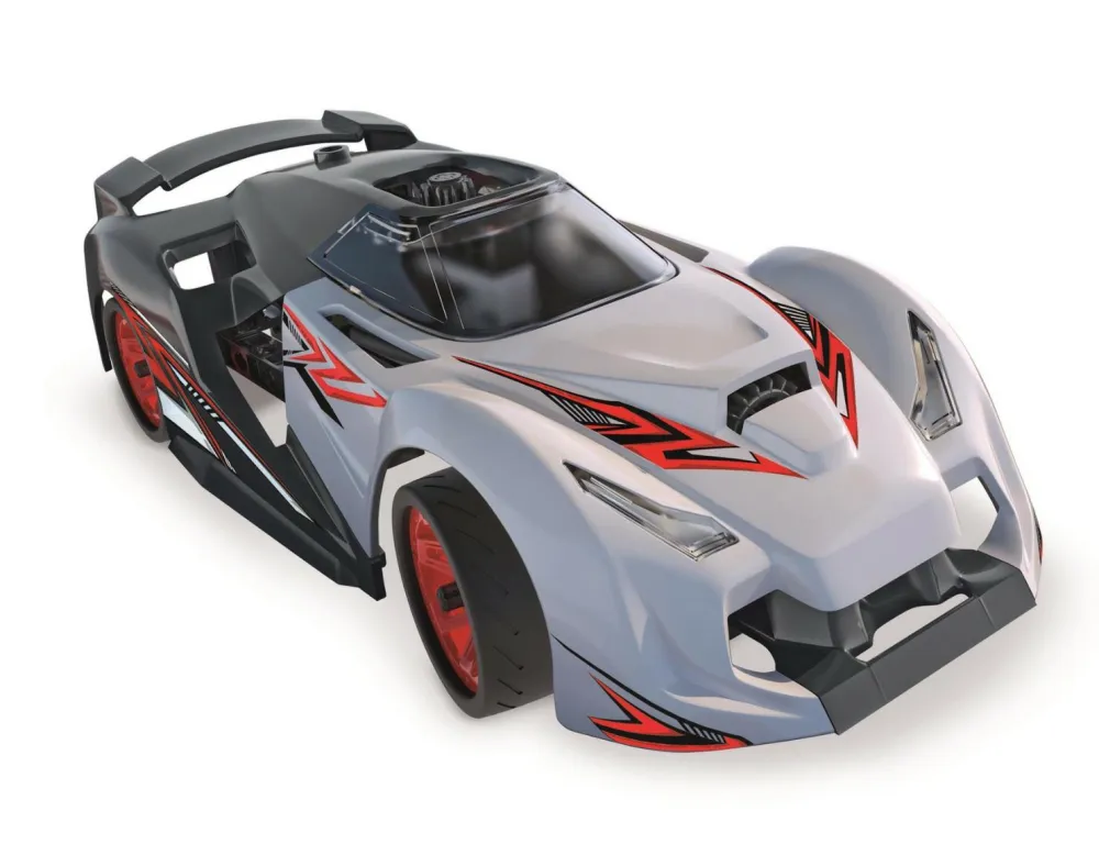 Din lille bilmekaniker vil juble af begejstring over denne virkelig flotte byg-selv-racerbil med over 100 dele.