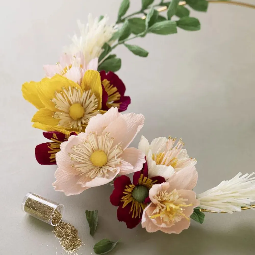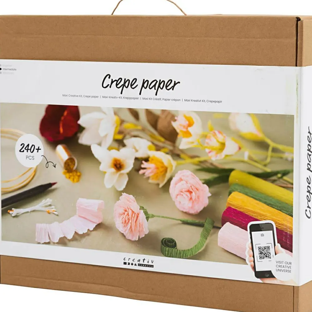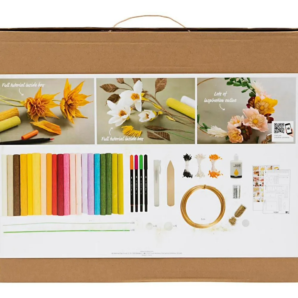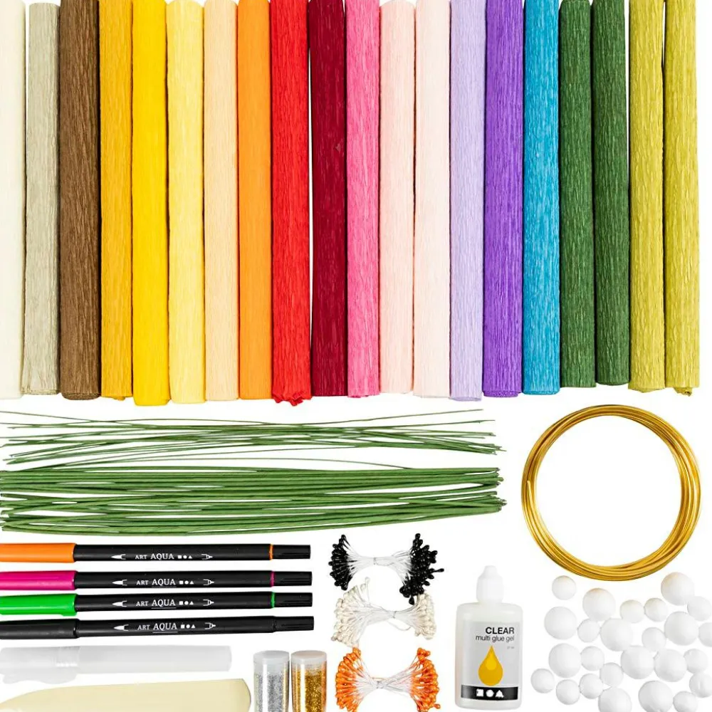 En stor, lækker pakke med læssevis af crepepapir og komplet, grundig vejledning til at lave hele 9 forskellige crepepapirsblomster.
