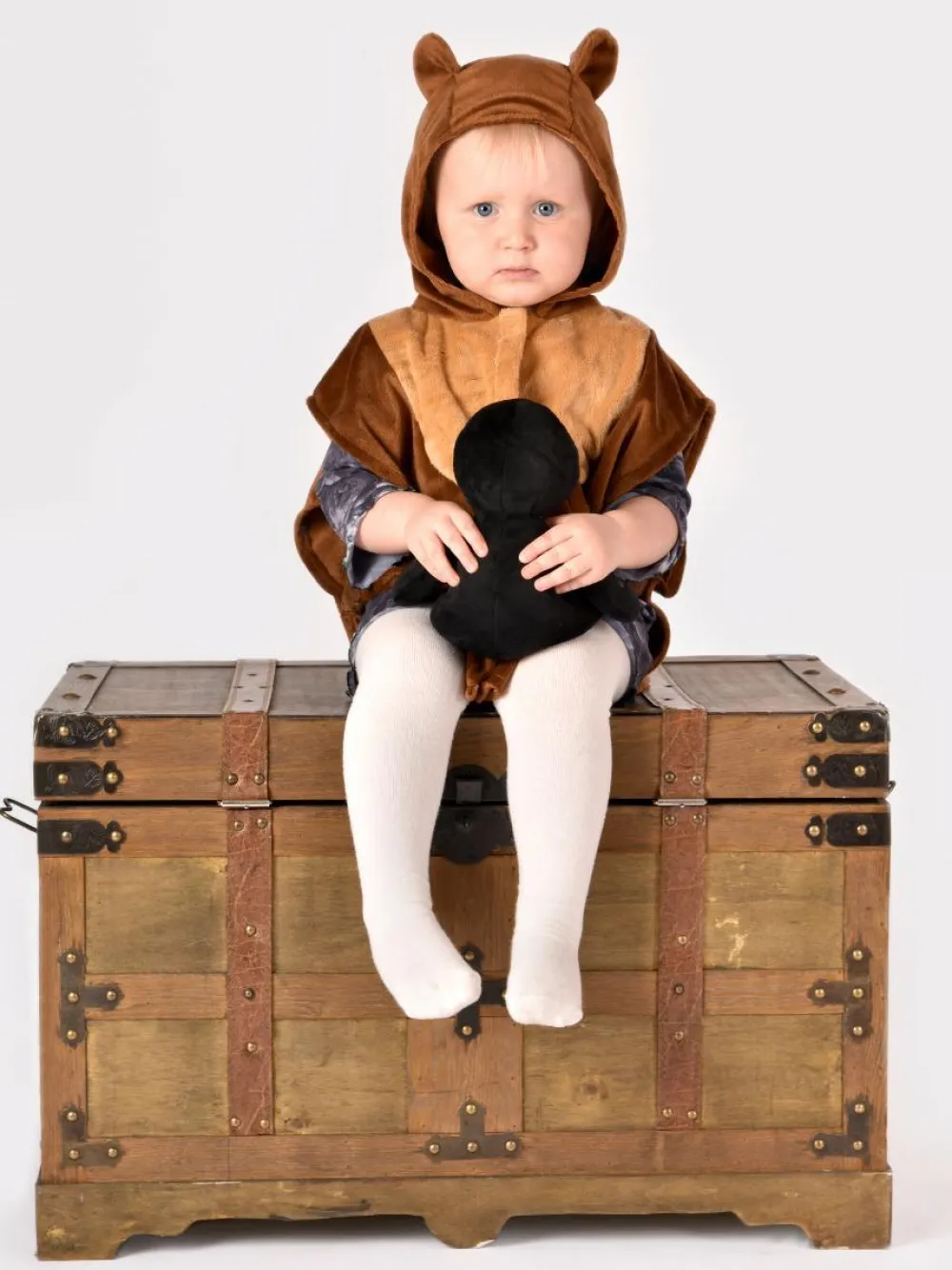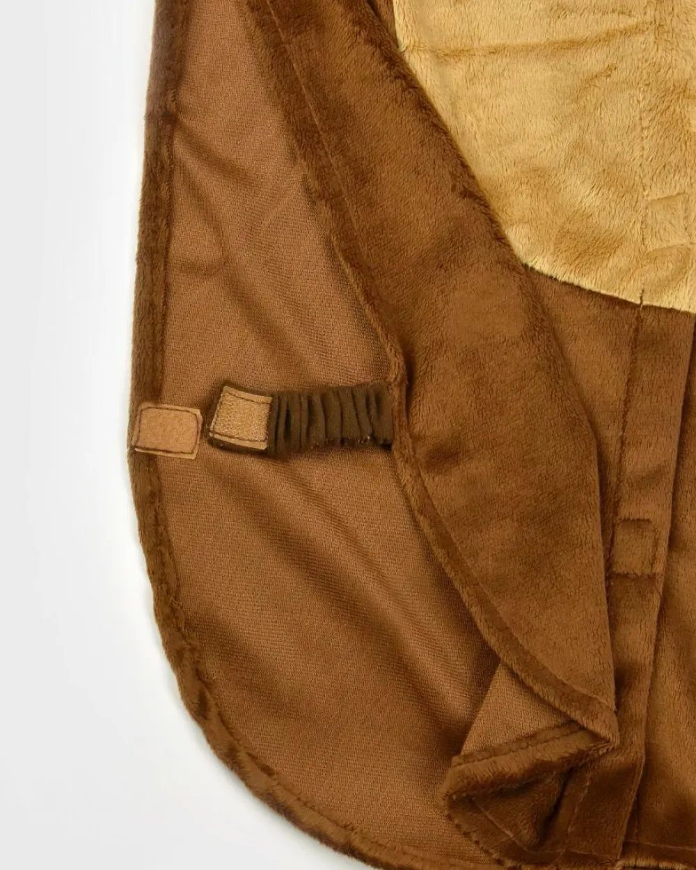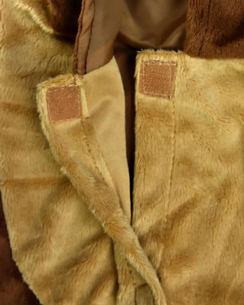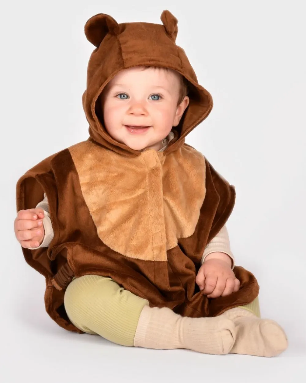 Den er så blød og fin, den lille bjørn. Lukkes med velcro under hagen.