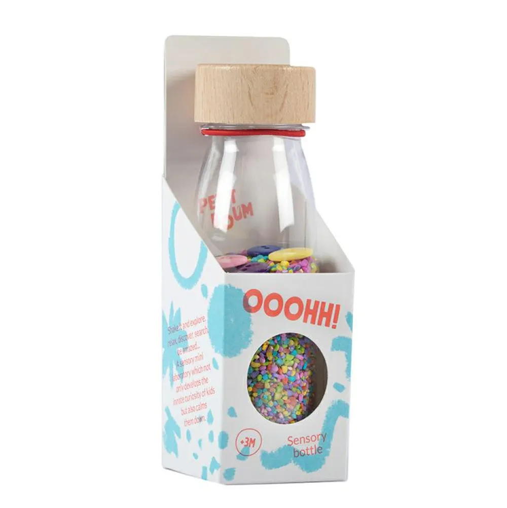 Fald til ro og tag en pause med at vende og dreje flasken se og høre indholdet rasle rundt derinde i det lille, lukkede kulørte univers.