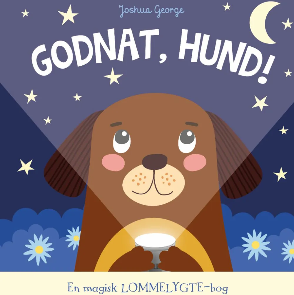 Indsæt den magiske lommelygte (som ikke bruger batteri) på hver side og hjælp Hund med at sige godnat til sine venner.