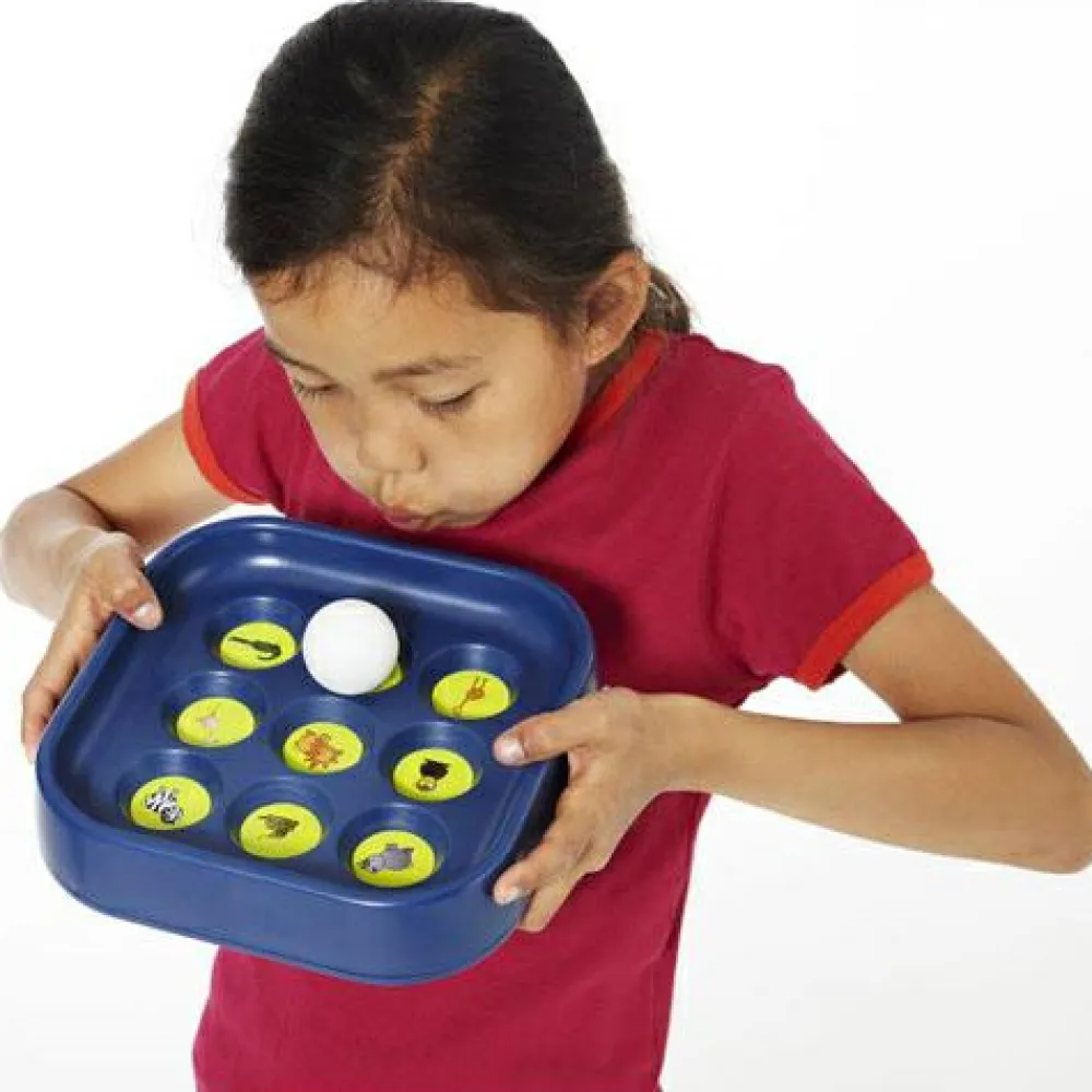 Hvert hul har sit eget billede. Hver spiller har en spilleplade med 9 billeder. Vinderen er den der først får dækket de 9 billeder Spillet fra Gonge udvikler læbens muskler og lærer barnet at puste med kontrol, hvilket på sigt er godt for sprogudviklingen samt mundmotorikken.