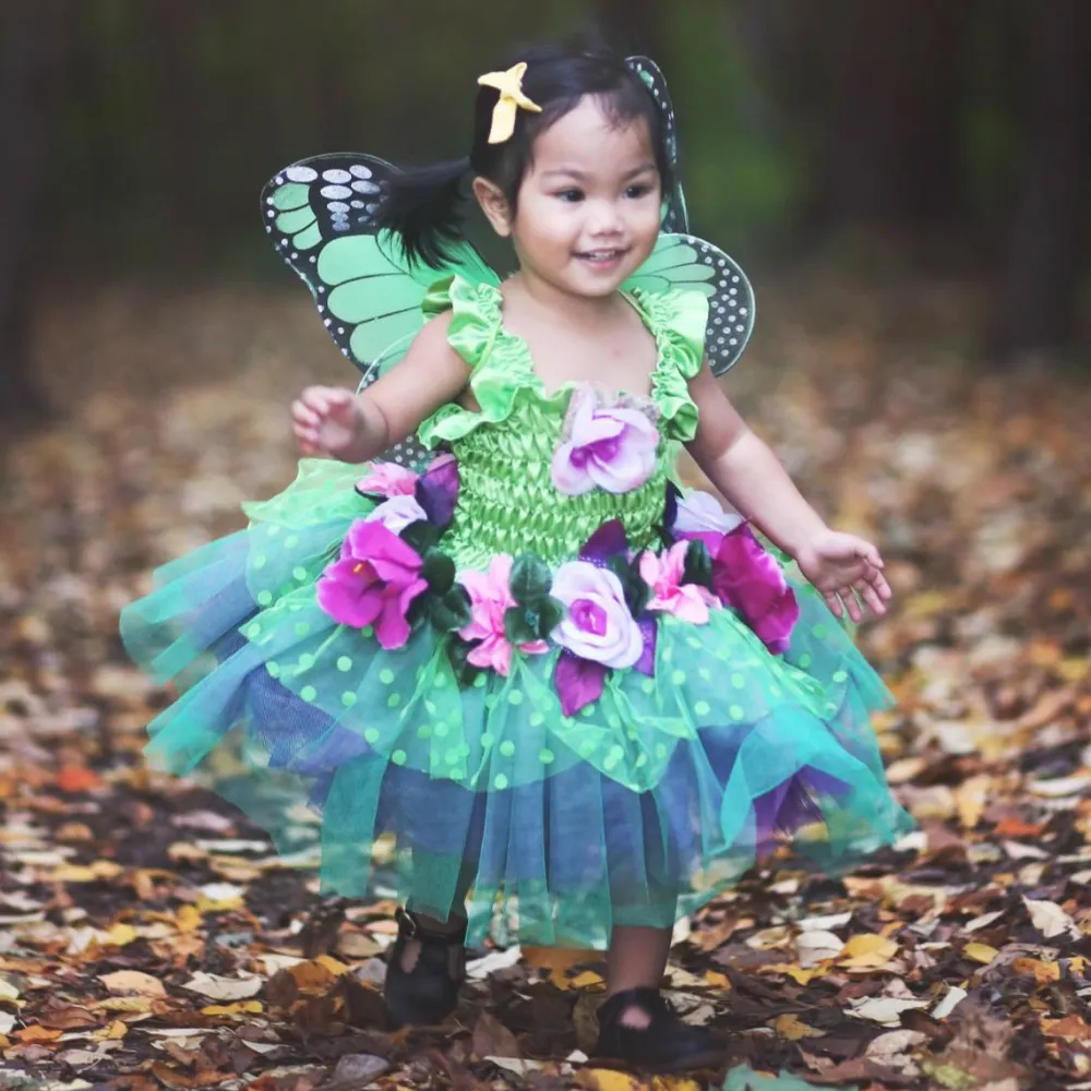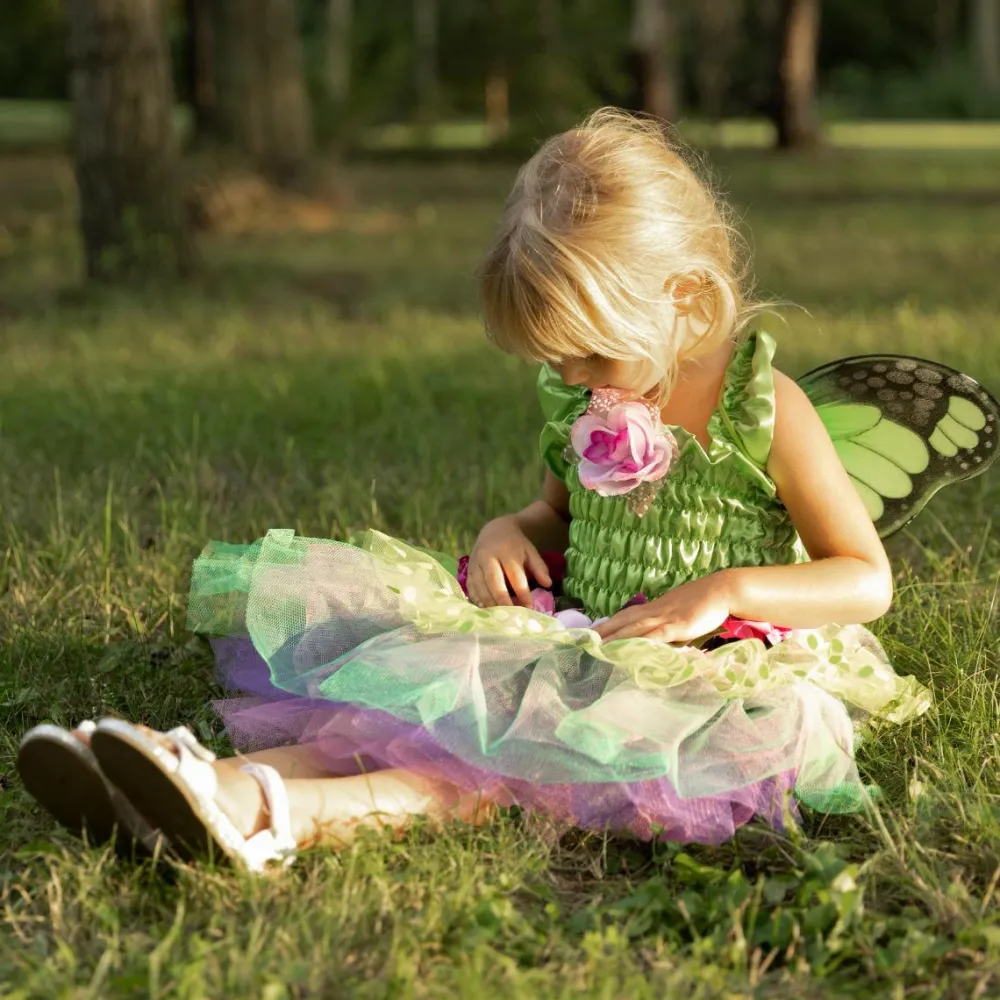 Et smukt kostume med vinger, blomster og alt, hvad en ægte skov-fe vil elske.