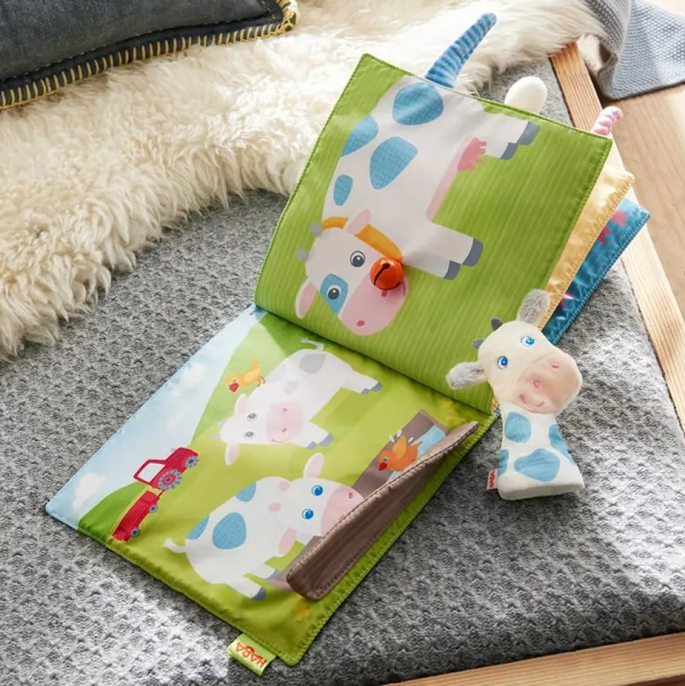 Lav selv historien om den søde ko, der skal med på tur i lommerne på bogen.