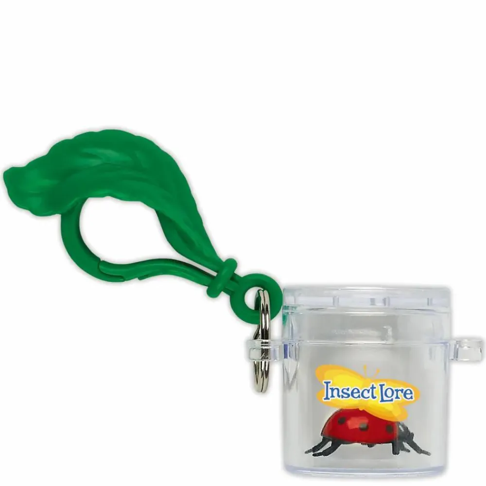 Fint lille insektglas med låg, der forstørrer x3, krog og en lille mariehøne.