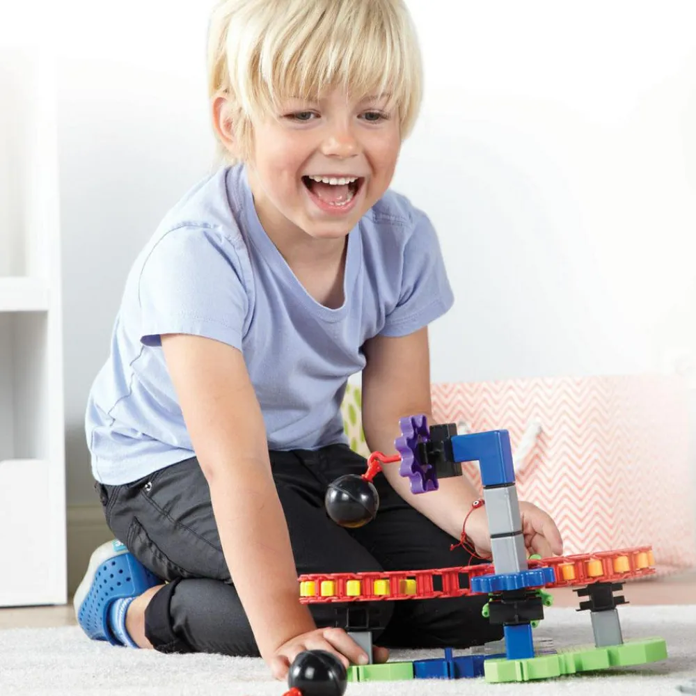 På den måde lærer dit barn noget om netop tandhjul og dermed om funktionen i en lang række maskiner og køretøjer, som vi har med at gøre hver dag. Tandhjul er en meget brugt metode til at overføre fremdrift eller energi fra et element i en maskine til et andet.