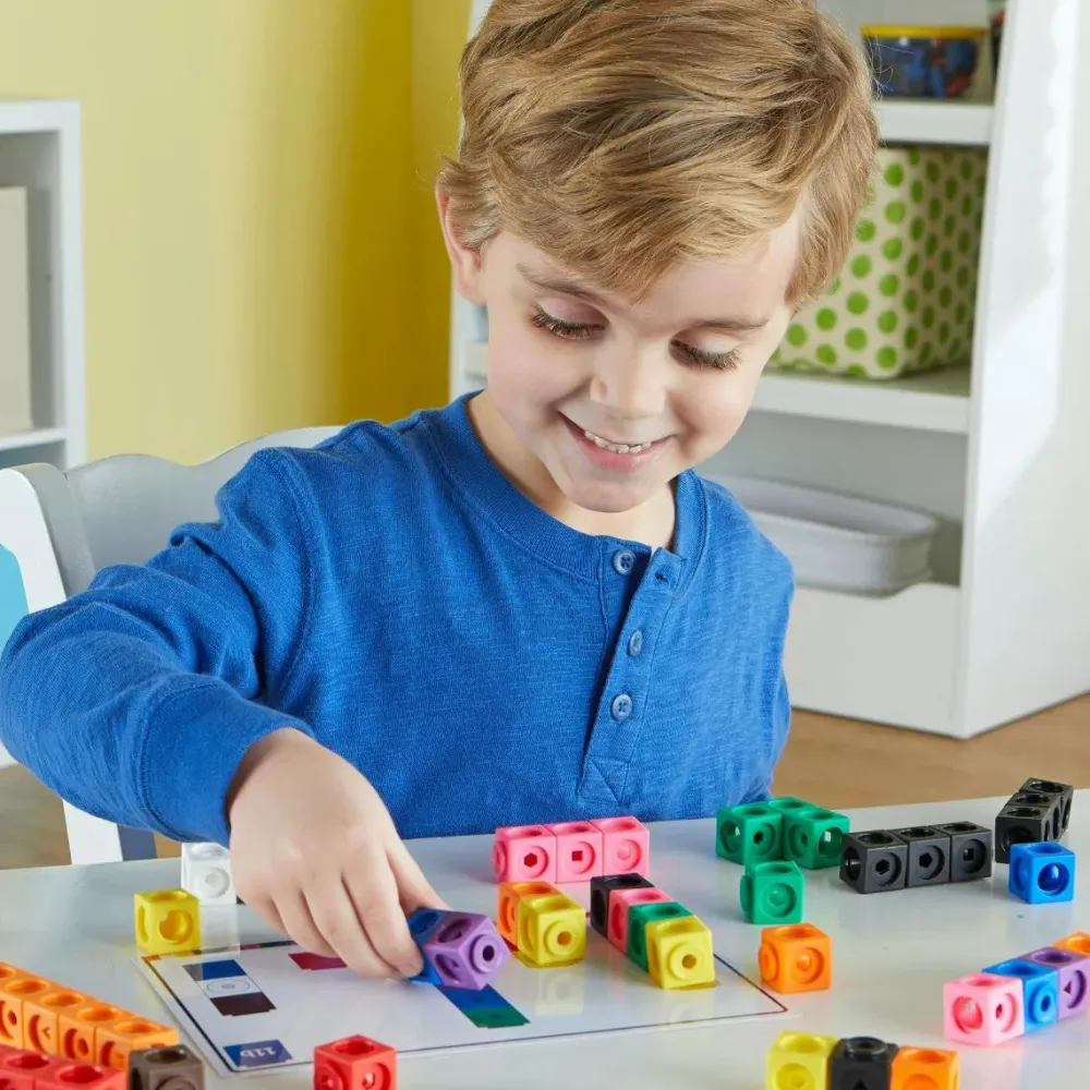 - 100 Mathlink Cubes i 10 forskellige farver, måler 2 cm på hver led