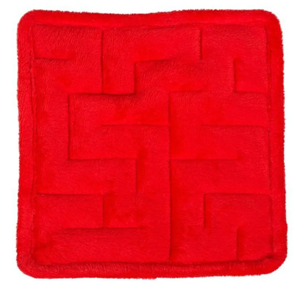 Inden i denne bløde pude er der en kugle af træ, som dit barn skal bruge fingrene til at føre rundt i den syede labyrint.