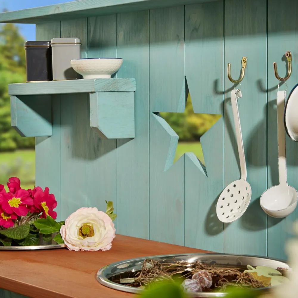 Kigger du efter det skønneste udendørs legekøkken med fine detaljer? Så synes vi at dette er et godt bud.