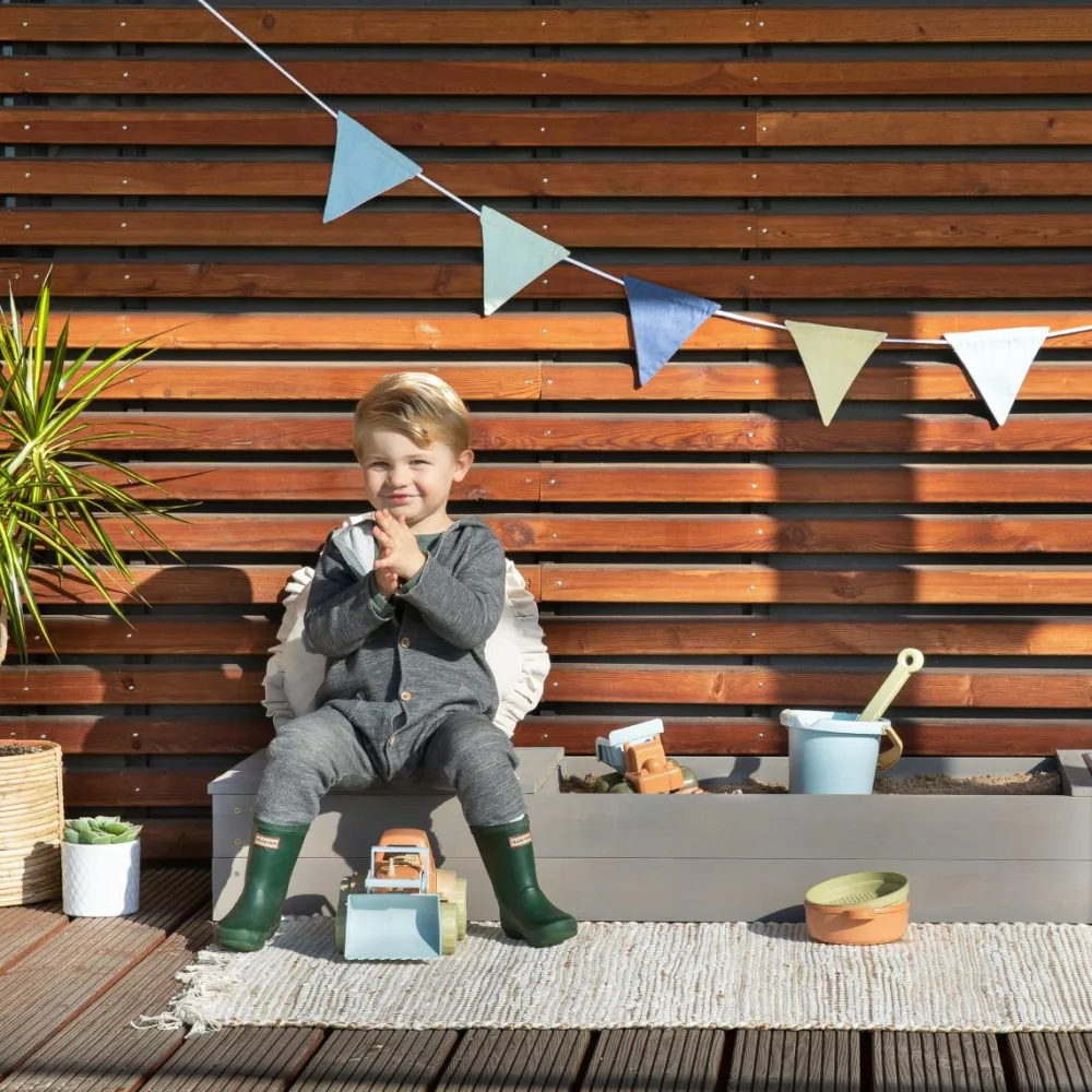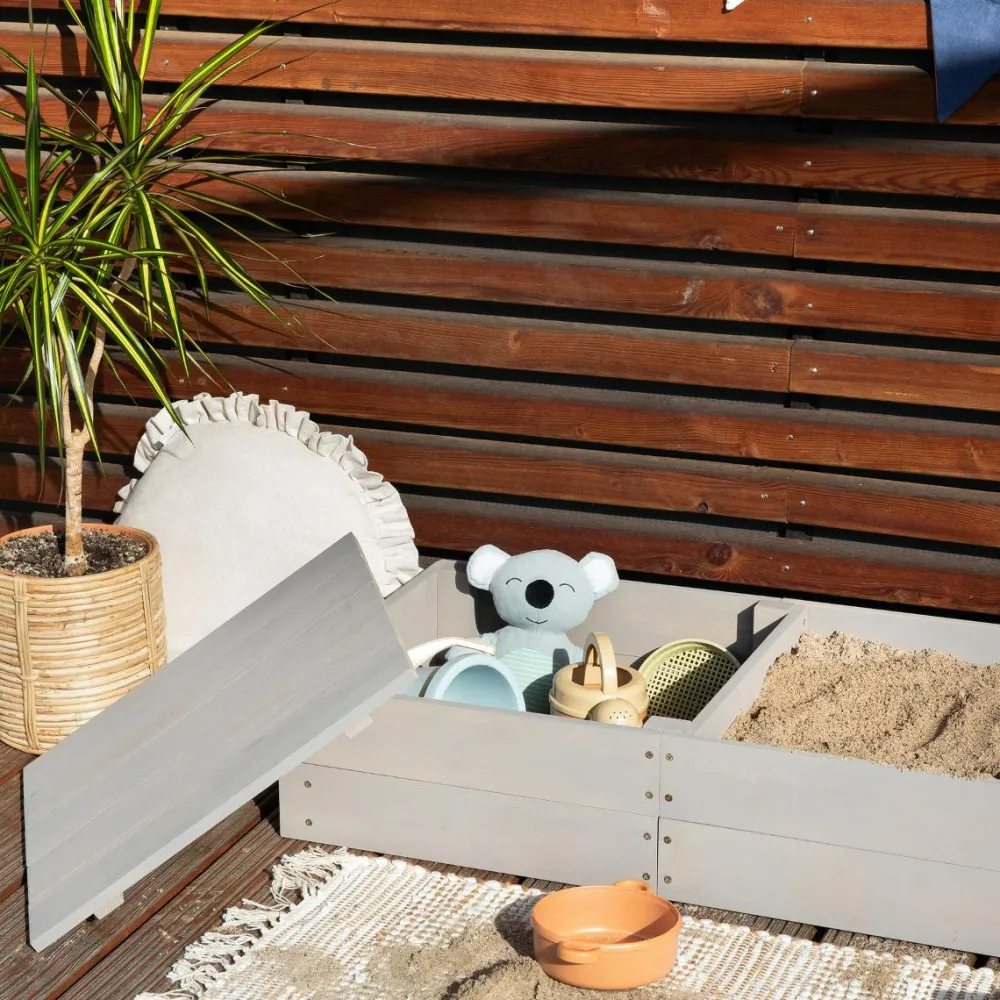 Vi anbefaler, at du også køber et cover til sandkassen, så holder både træet og sandet længere. Det kan du finde ved som tilbehør til sandkasse her hos Legeakademiet.