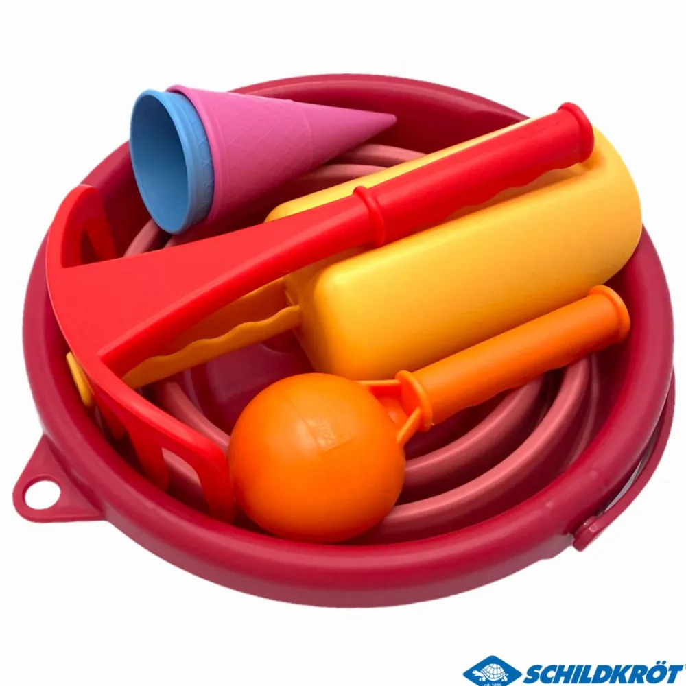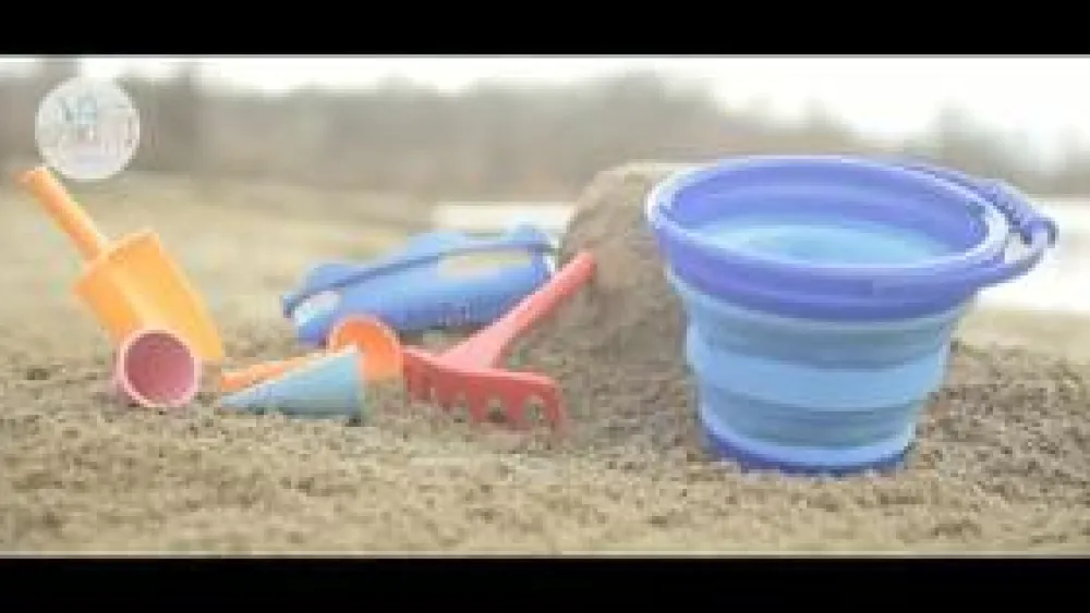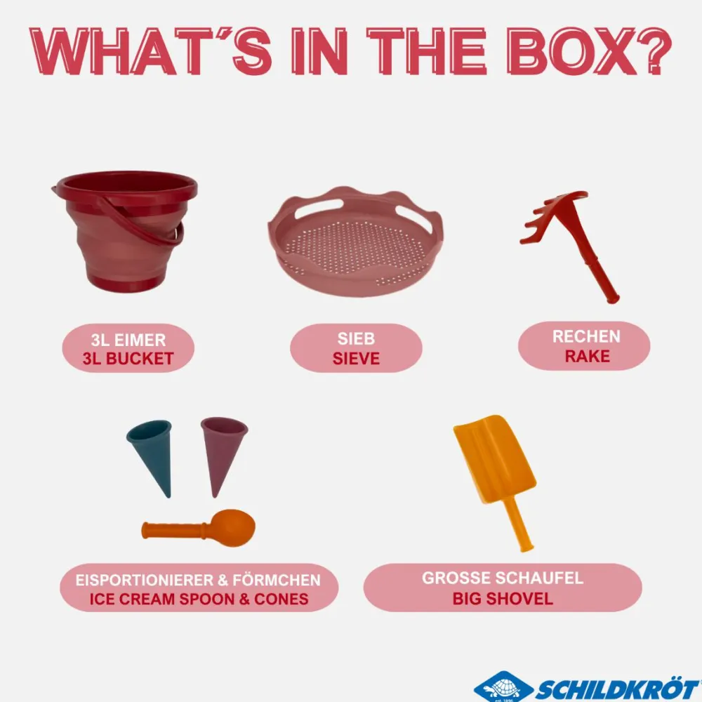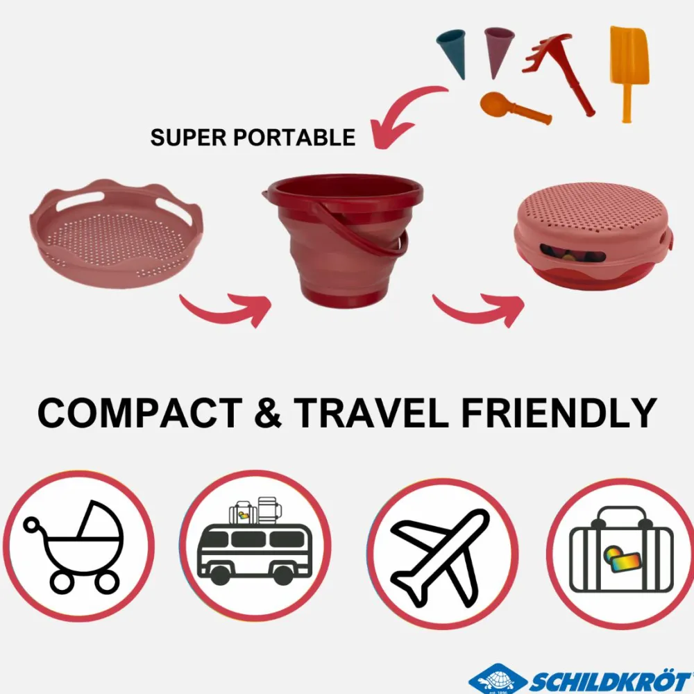 Smart sandsæt, hvor der er tænkt over at legesagerne skal være nemme at pakke sammen og tage med på tur til sandkassen eller stranden.
