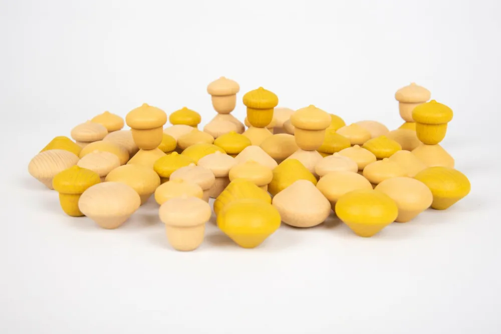 – 30 kampesten og 30 agern i 3 gule nuancer, der repræsenterer visdom, læring og lykke.