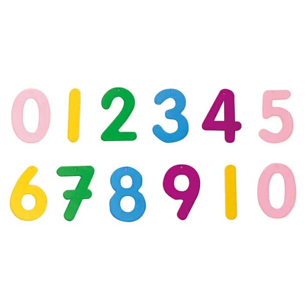 7 cm flotte gennemsigtige tal, som dit barn kan undersøge, tegne efter, lære med og hænge op i det lille hul øverst.