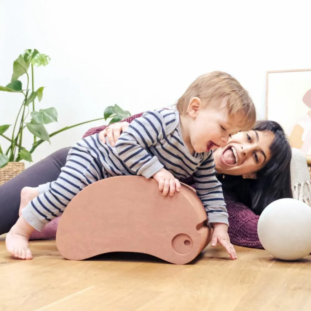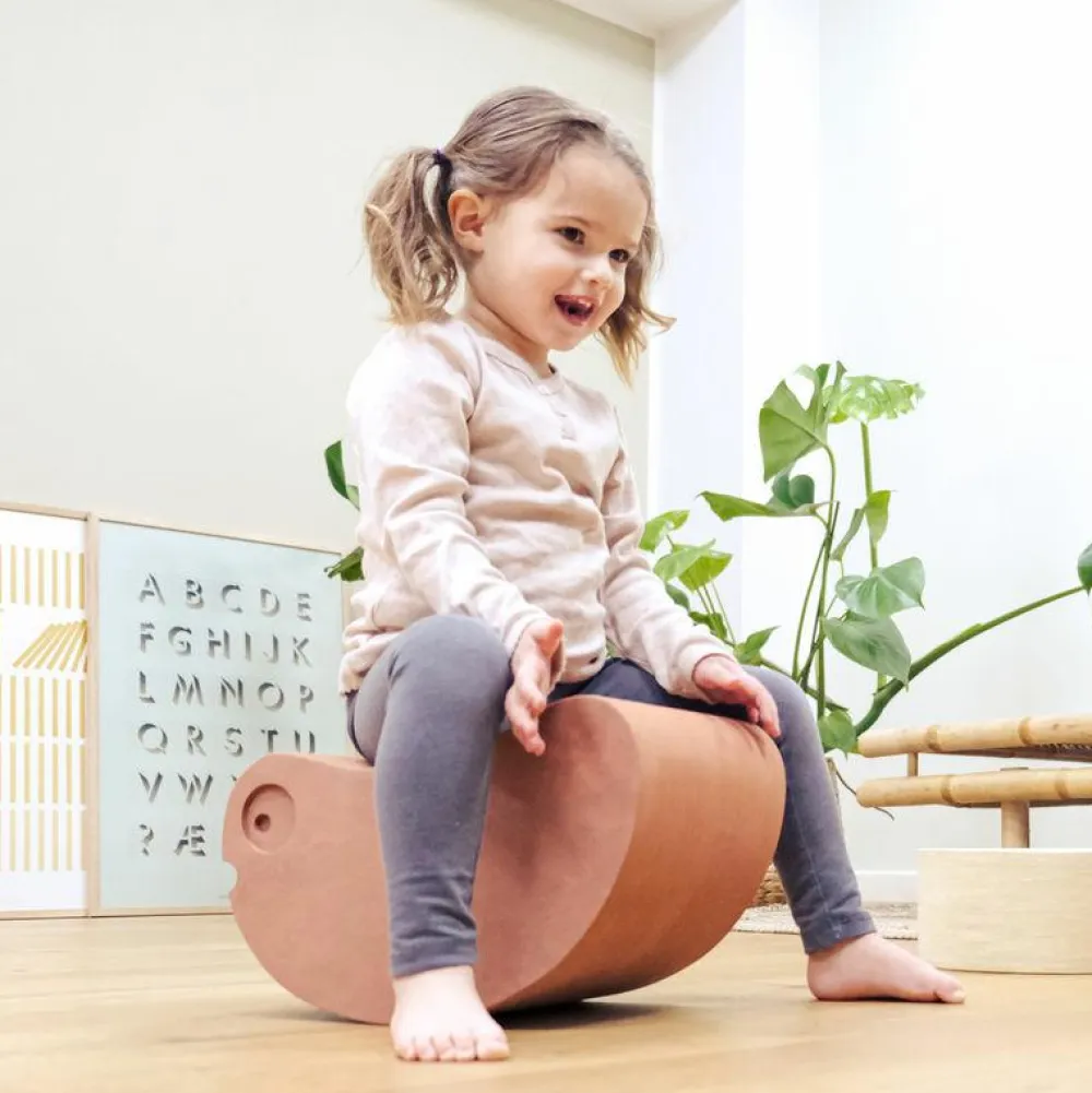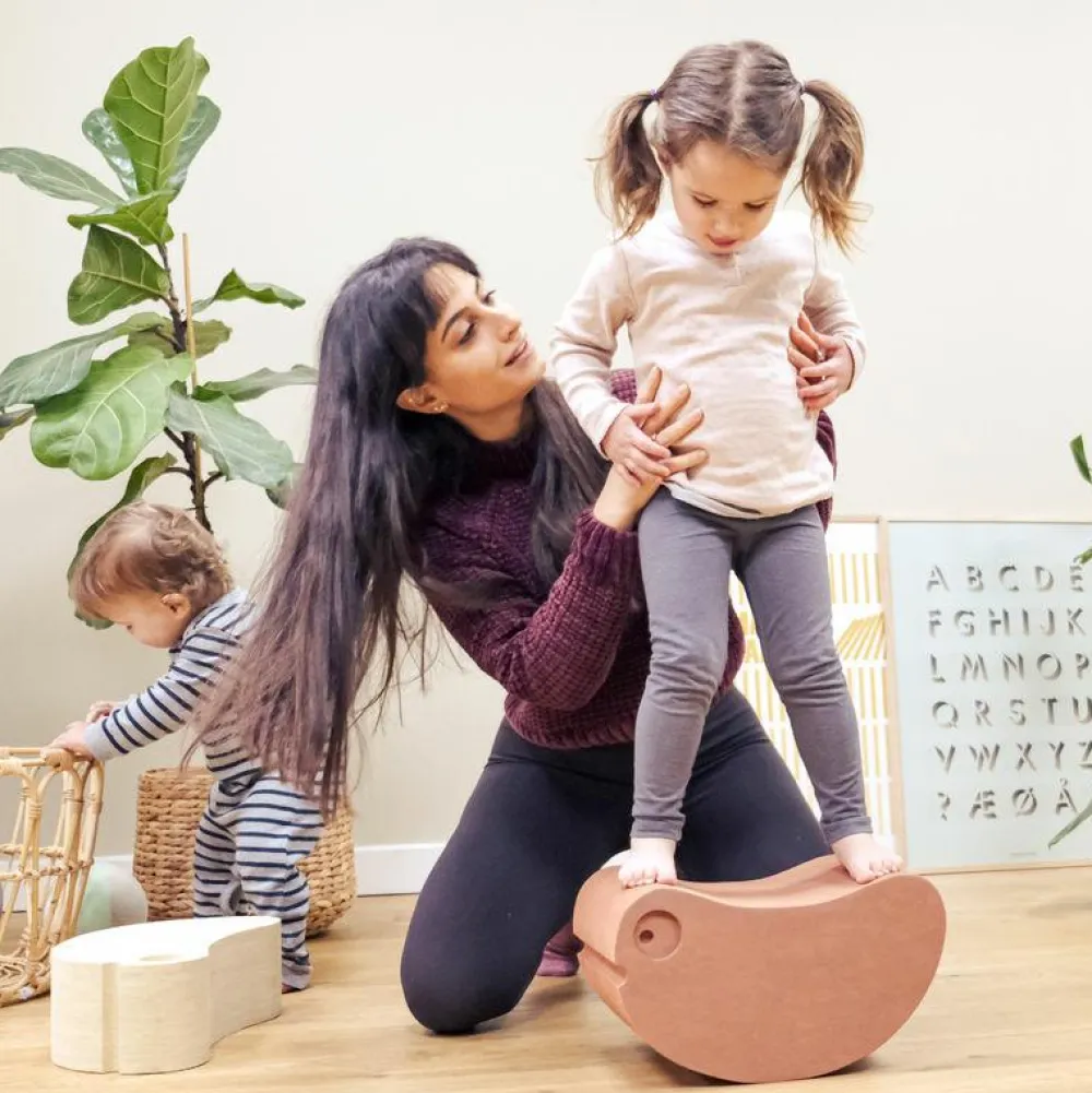 Både balanceevne og koordination bliver trænet på den store Ælling, som har et udfordrende balancepunkt både for det lille og det større barn. Ælling elsker at blive tumlet på, og har man flere, kan de stables til forskellige siddehøjder. Gør klar til leg!