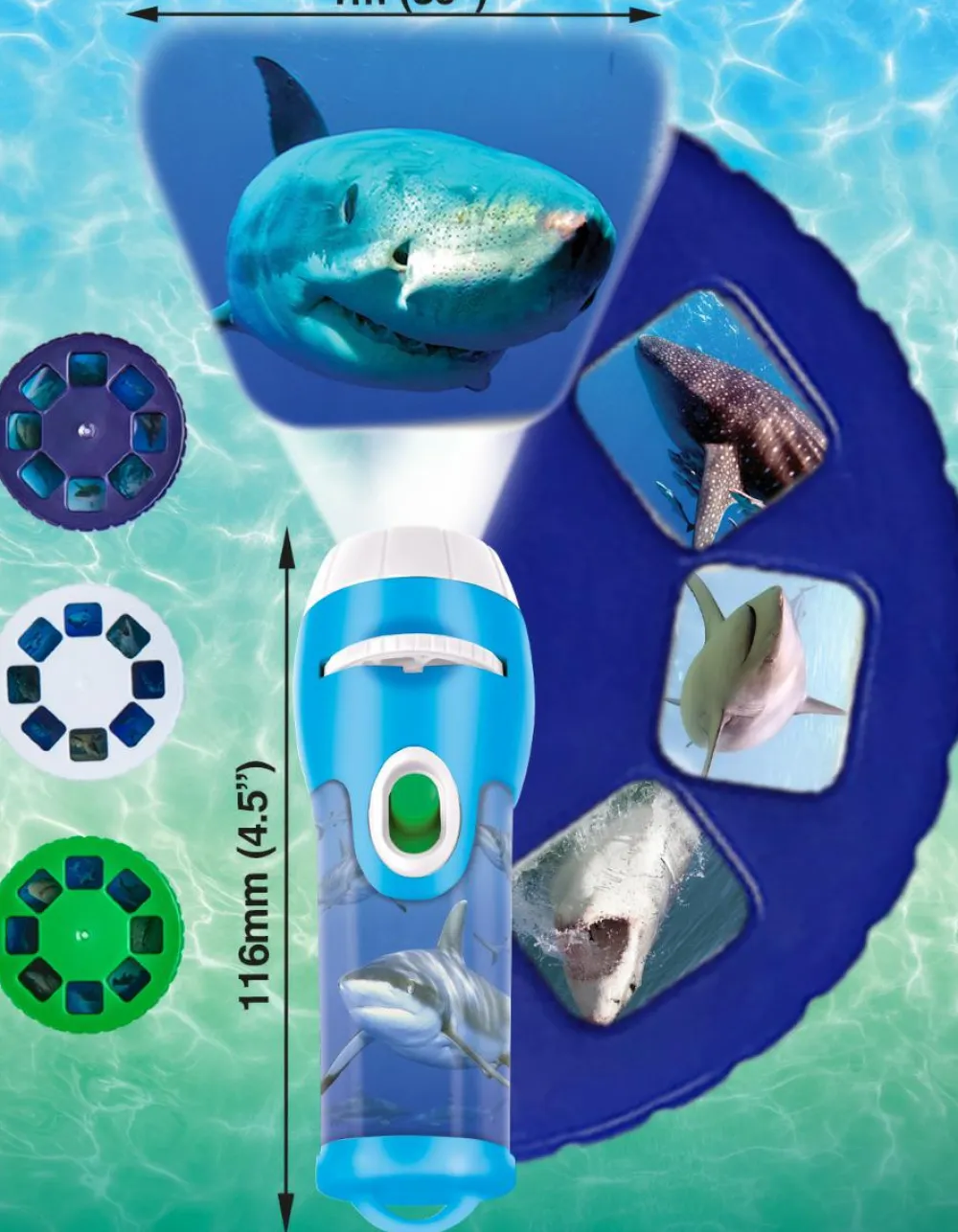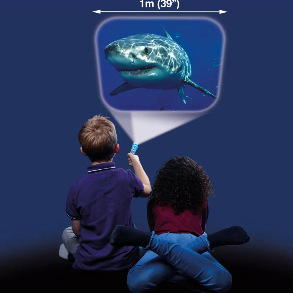 Sej lommelygte, som kan vise 24 flotte billeder af forskellige fascinerende hajer.