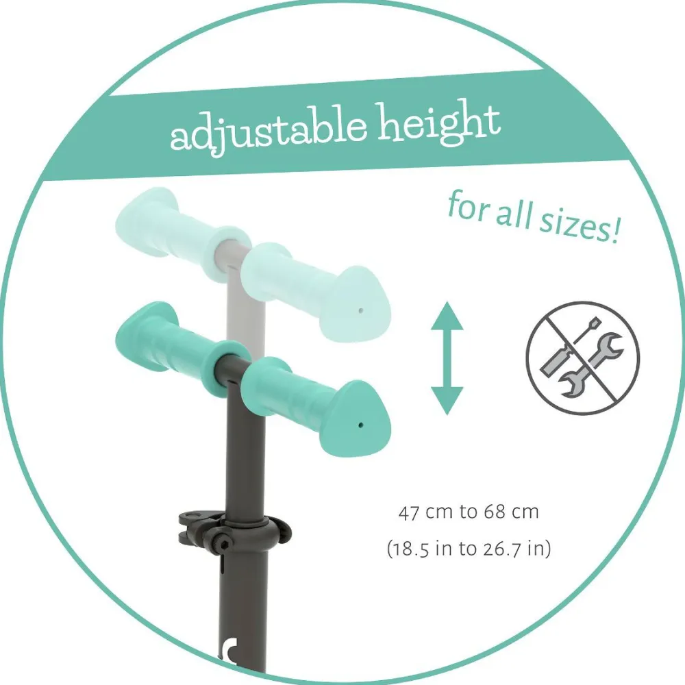 - Fra gulv til toppen af styret måler Scotti fra 52-73 cm alt efter, hvordan du indstiller styret