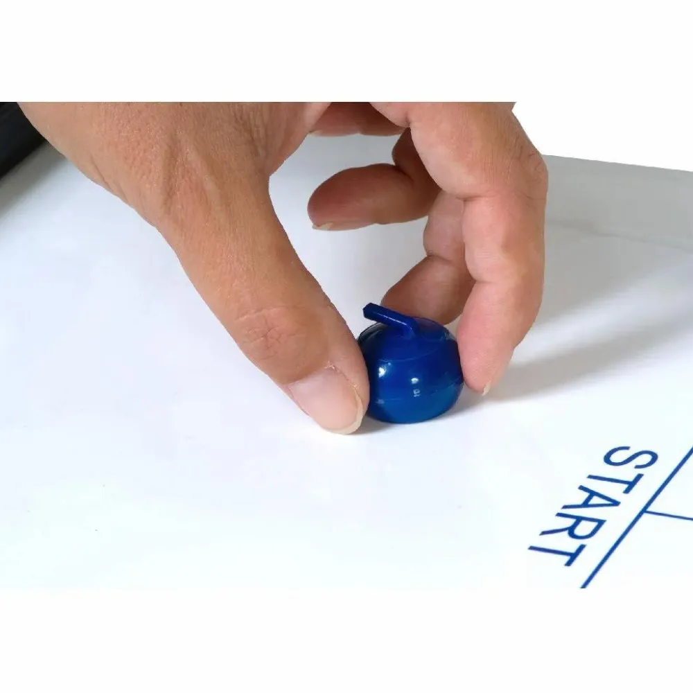 Har I set curling i fjernsynet? Her kan I spille en bord-udgave med bittesmå nuttede curling-sten som I sender afsted med fingrene.