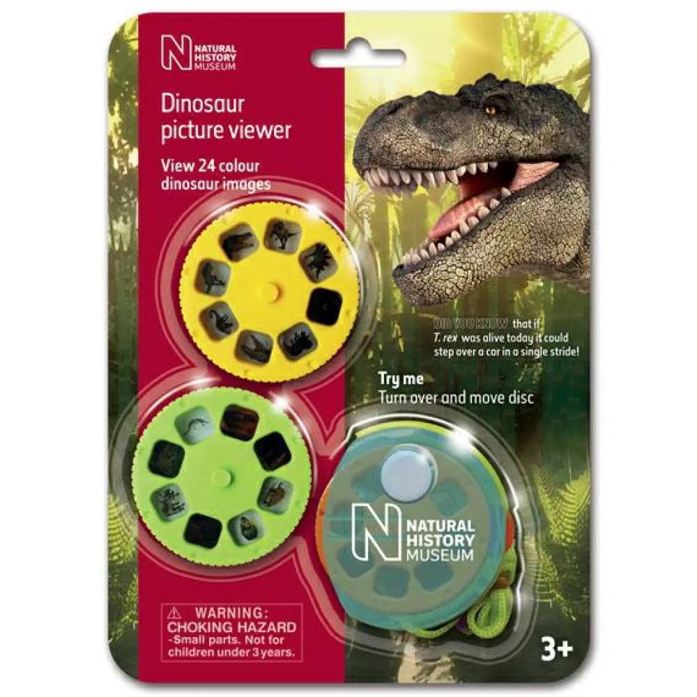 Fin, håndholdt projektor med 24 billeder af farlige dinoer.