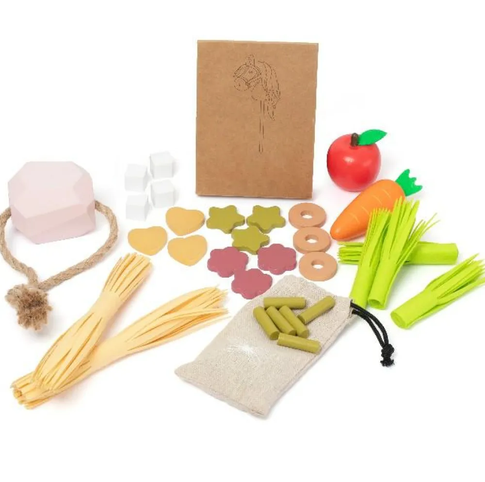 Så er der lækre snacks til lækkersultne kæpheste: Saltsten, halm, græs, gulerødder, æble, godbidder, hestepiller og det måske allerbedste: Sukkerknalder!