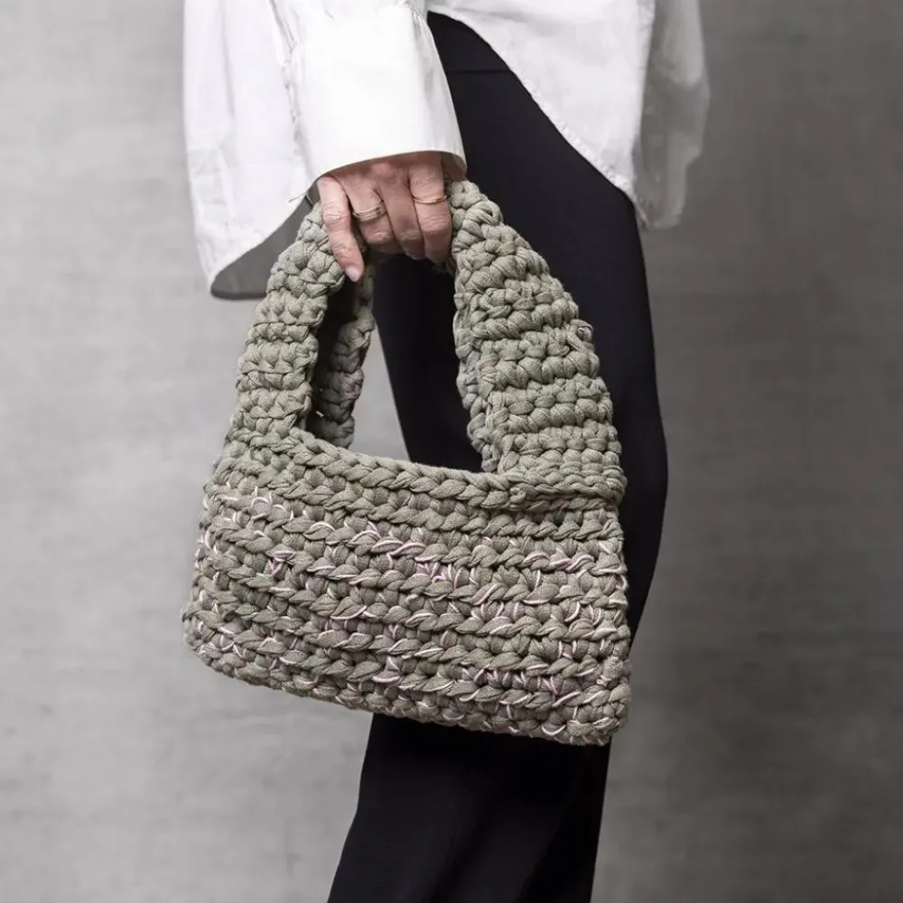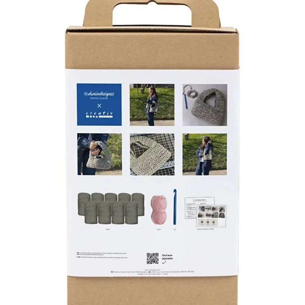 Med sættet her kan du eller dit barn lære at hækle en taske af tykt tubegarn.