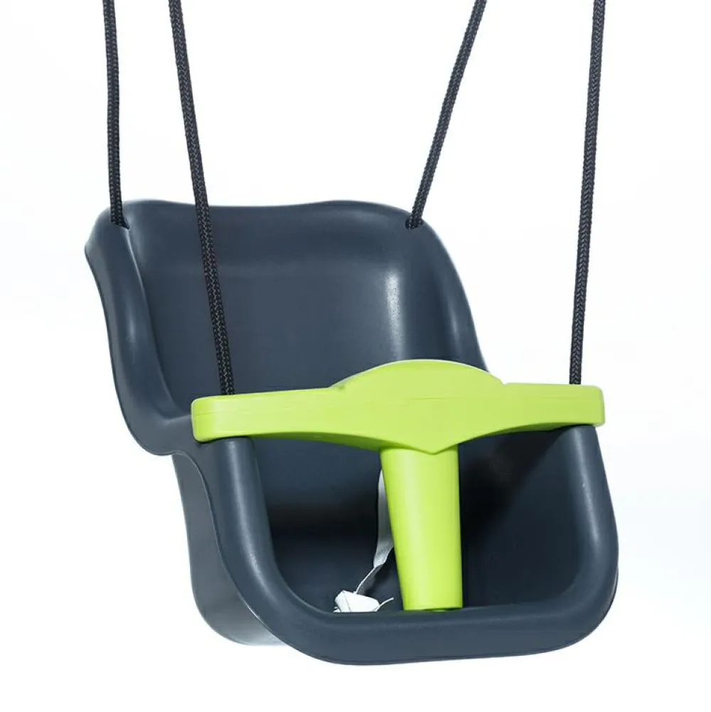 Alle materialer er vejrbestandige og solide. Gyngen er af plast, rebene er af kunststof, men de er lavet sådan, at de er rare at holde om for små hænder.
