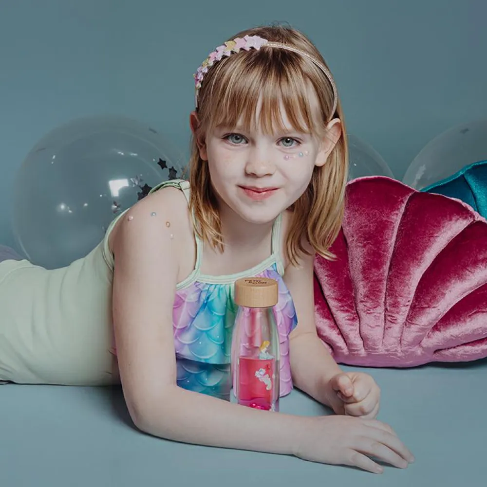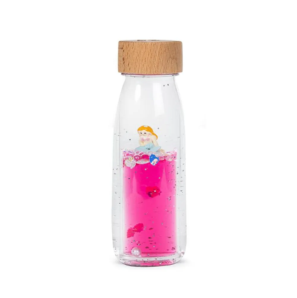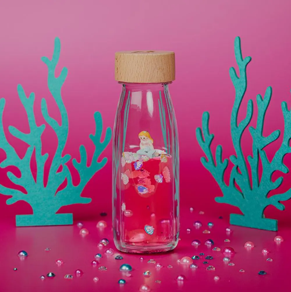 Fald til ro og tag en pause med at vende og dreje flasken og se havfruen bevæge sig rundt mellem muslinger og en perle.