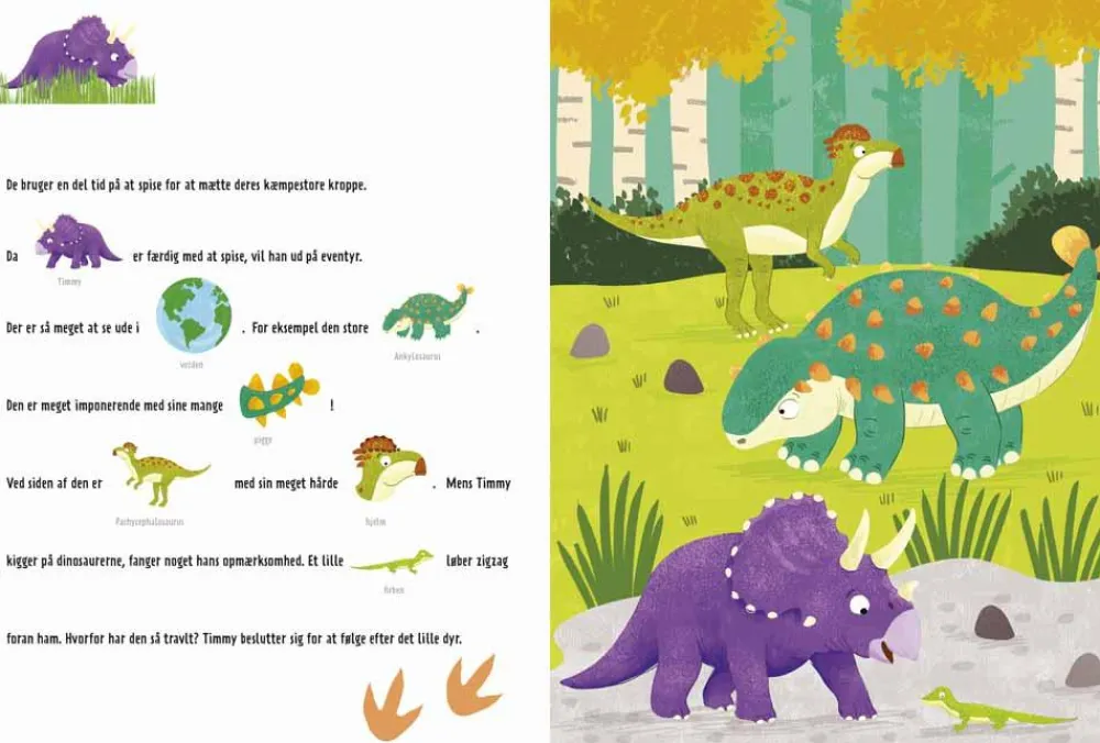 HIstorien handler om den lille Triceratops, som går på eventyr med et firben, bliver væk fra sin mor, møder en farlig tyrannosaurus men heldigvis finder hjem igen med hjælp fra hjælpsomme dinoer.