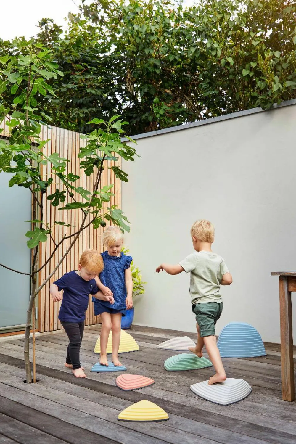 Der er skridsikkert gummi under hver af toppene. De er lavet af slidstærkt og allergivengligt plastmateriale.