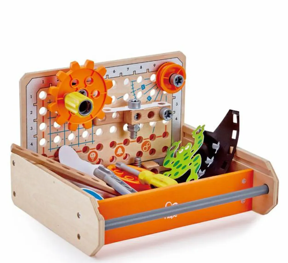 Alle delene er at finde i en fin værktøjskasse, som er nem at pakke ud og ned igen, så den er oplagt at tage med på tur eller i sommerhus.