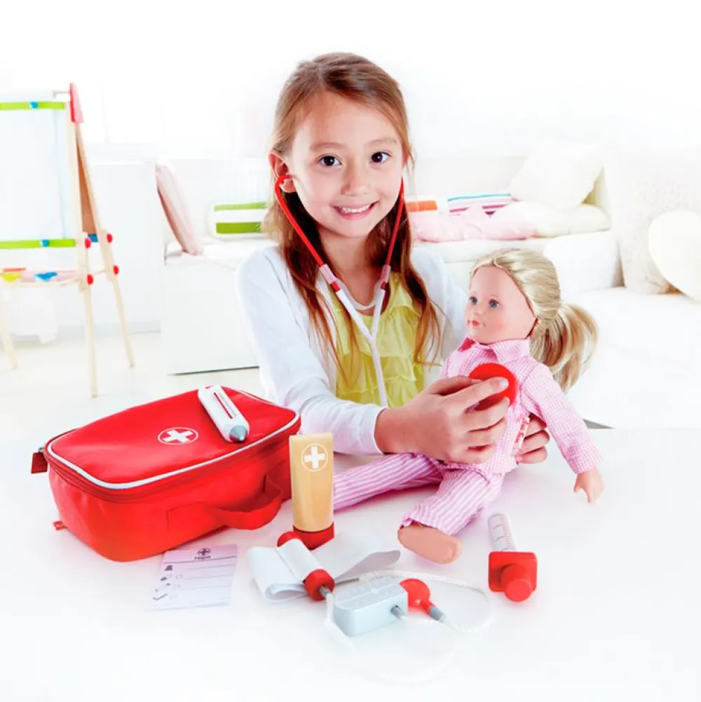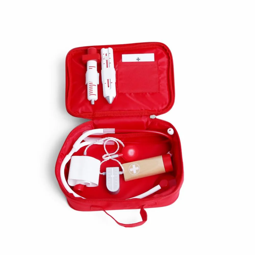 Med dette fine lægesæt er der altid en læge til stede, hvis en dukke, bamse eller du kommer til skade og skal plejes.