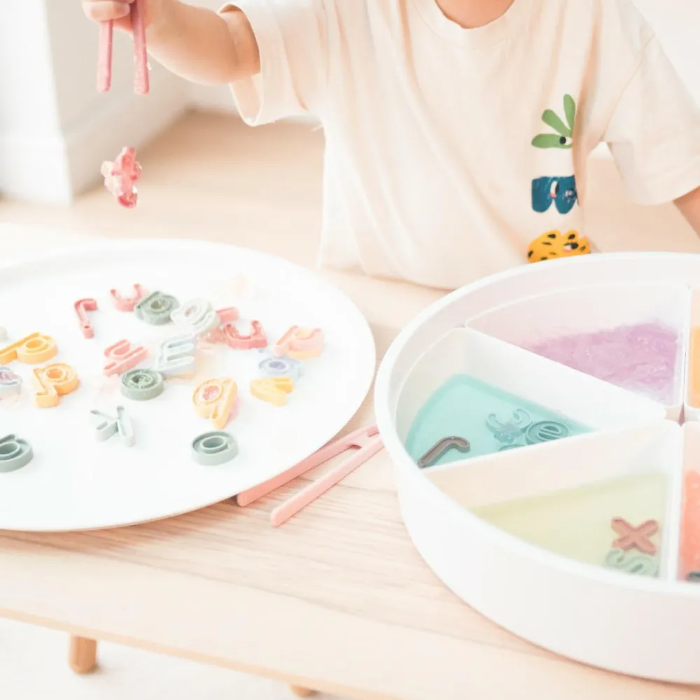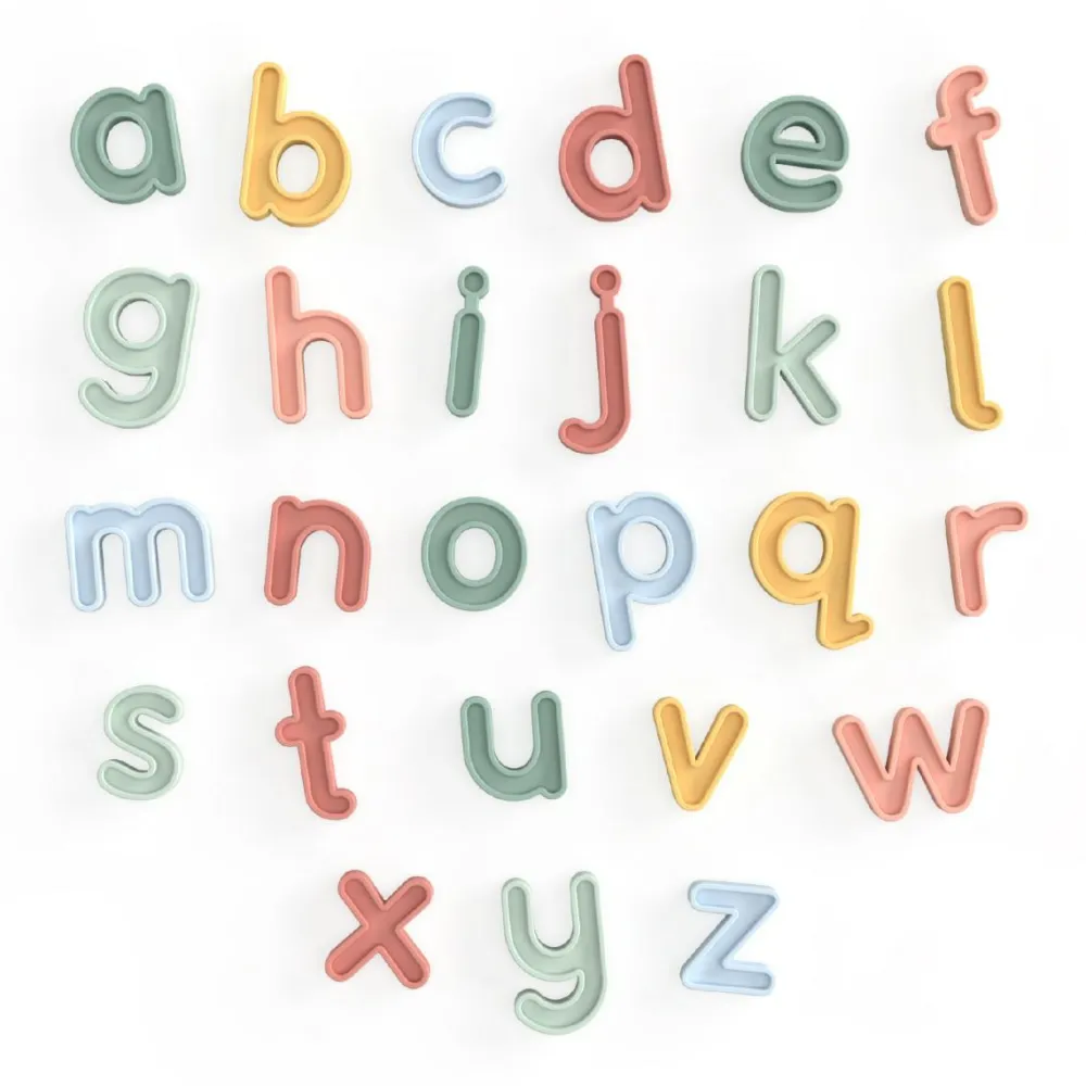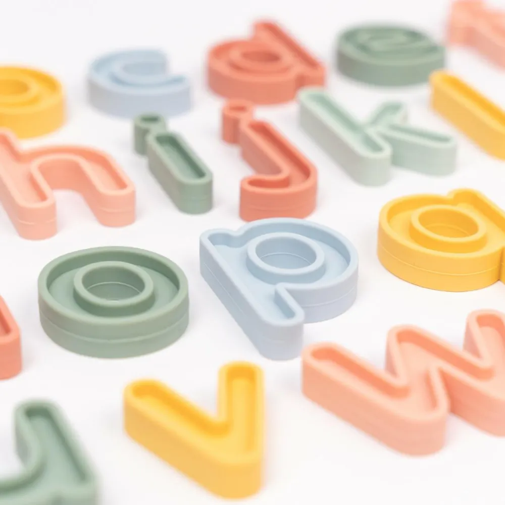Når dit barn skal lære bogstaverne, så er det en god ide at bruge mange forskellige metoder. Her er den fingrene og kreativiteten, der kommer på banen. De små bogstaver af silikone er gode at bruge til sansemotoriske leg sammen med andre materialer.
