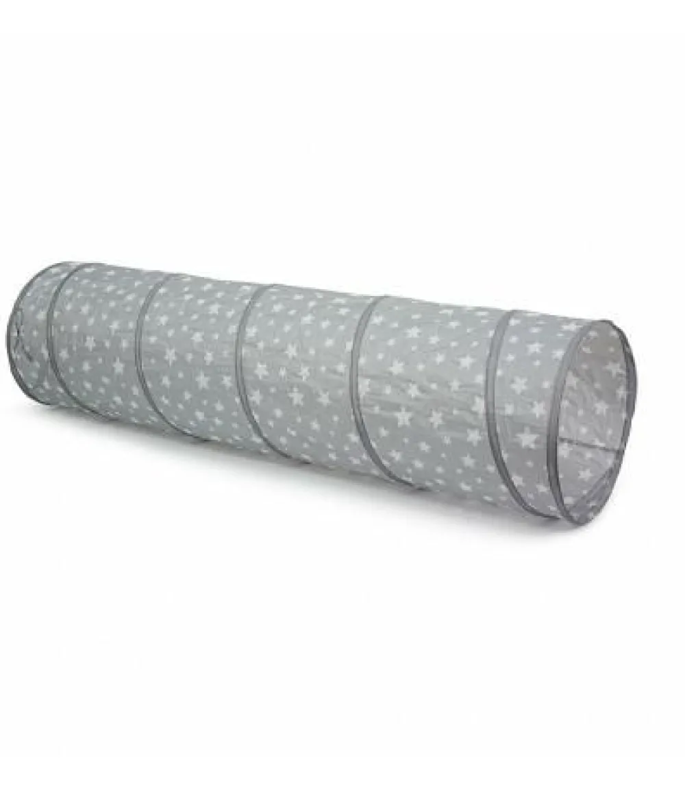 Tunnellen er grå med stjerner på, og den kan nemt trilles sammen og lægges væk.