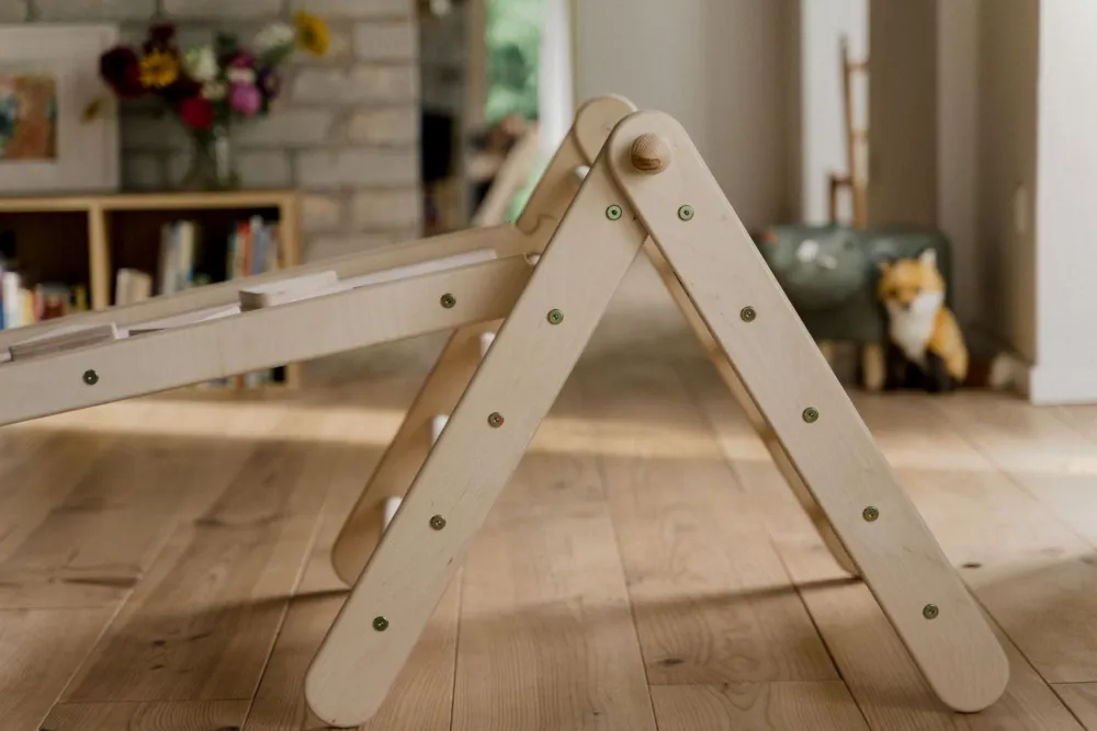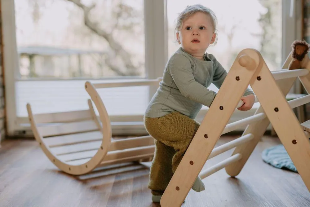 Klatretrekanten kan både være et legeredskab i traditionel forstand og en hule, en hemmelig grotte eller en væmmelig hule under jorden alt efter, hvad dit barns fantasi og et stort tæppe kan trylle den om til.