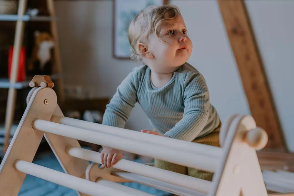 Bliver legetøjet ridset, kan du forsigtigt slibe med fint sandpapir. Kletterling er til leg indendøre.