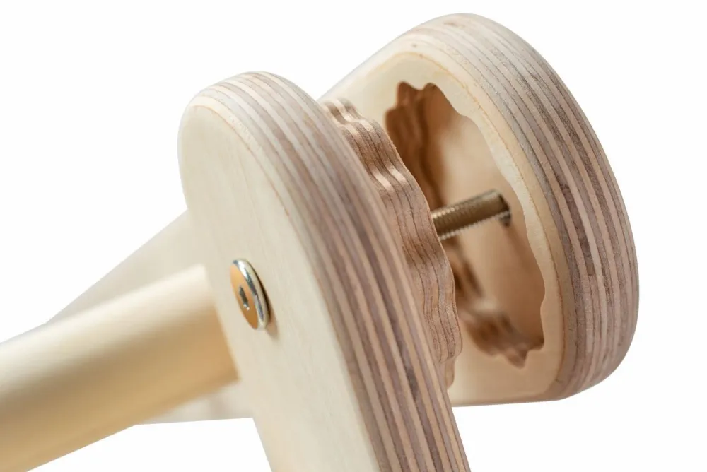 Limen er økologisk lignin. Et limstof, som i naturen binder plantevæv sammen. Træet bliver hverken malet eller lakeret, så dit barn kan mærke træets bløde, nøgle overflade. Det lettiske værksted er valgt ud fra et ønske om at støtte en socialt ansvarlig virksomhed og skabe økonomisk vækst i et land, der trænger til det.