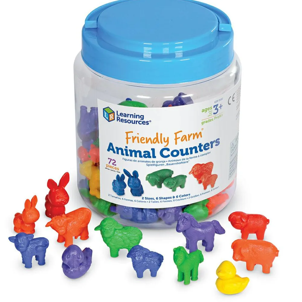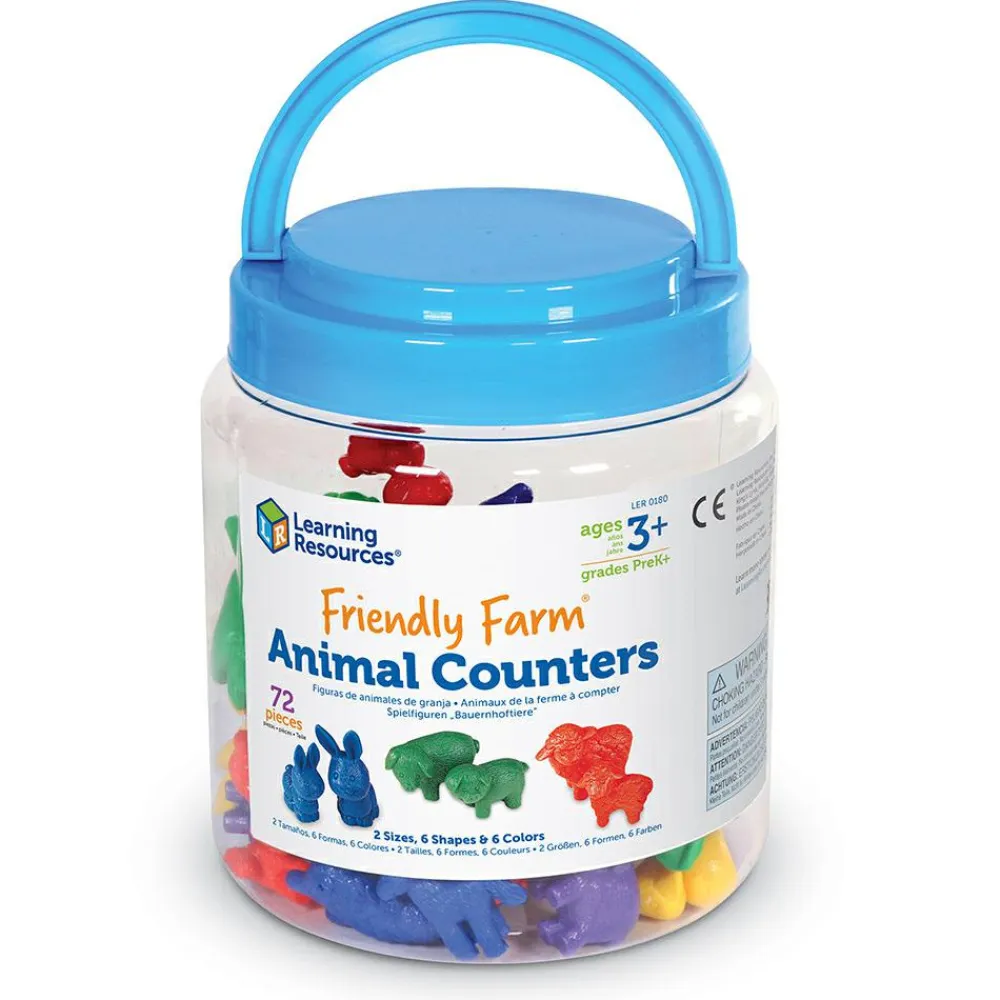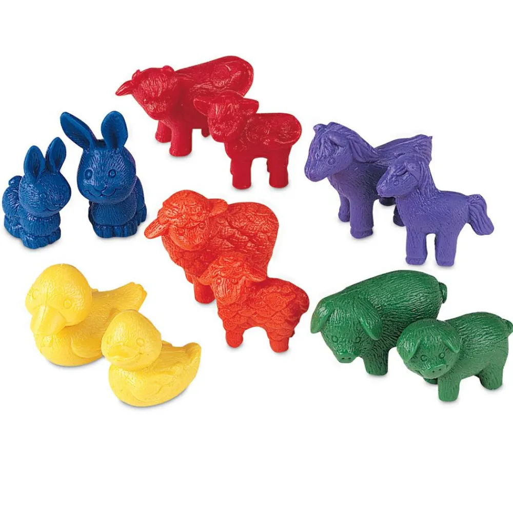 Med en bøtte i skødet kan du sammen med dit barn – eller måske i en børnehavegruppe – virkelig få gang i at tælle og sortere. Hver bøtte indeholder nemlig i alt 72 dyr – 6 forskellige “arter” med dyr og unge i 6 forskellige farver.