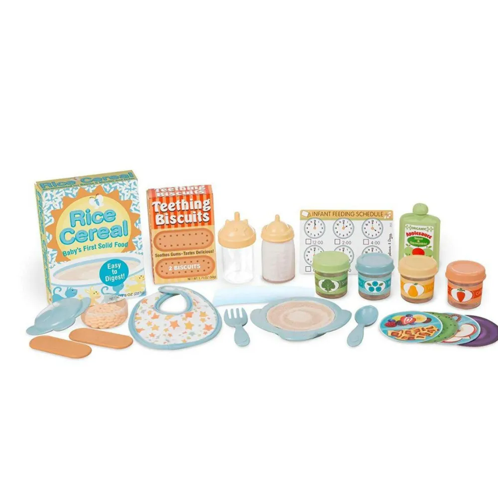 Stort og ret imponerende dukkesæt med 24 dele, så dukken kan spise mange forskellige ting.