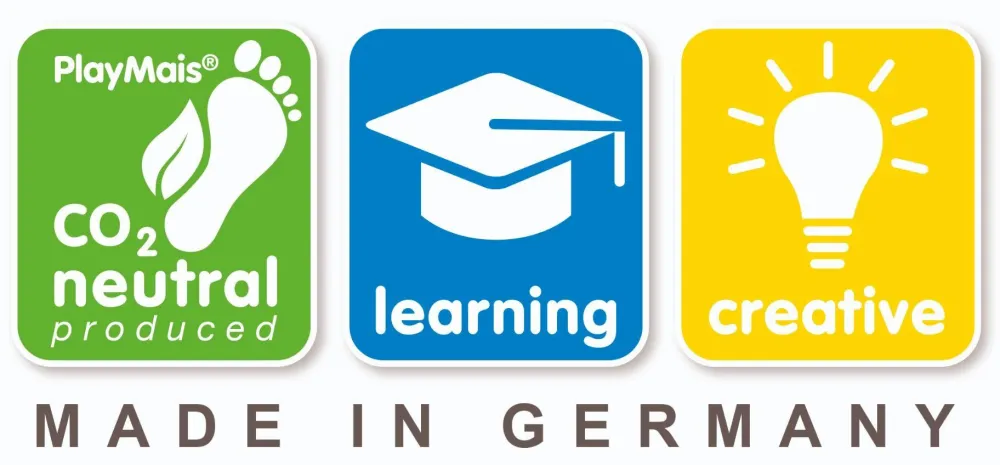 Det er nemt at være kreativ med PlayMais. Dit barn tager en dut op, skærer den over eller maser den i den form, I ønsker, fugter den på en våd svamp og klæber den fast der, hvor dit barns kreativitet siger, at den skal sidde. Klæbeeffekten opstår, når stivelsen i majsstivelsen møder vand. PlayMais har modtaget et væld af priser verden over . De er 100% komposterbare, biologisk nedbrydelige, CO2-neutrale og faktisk kan man spise dem.