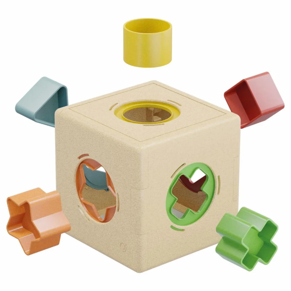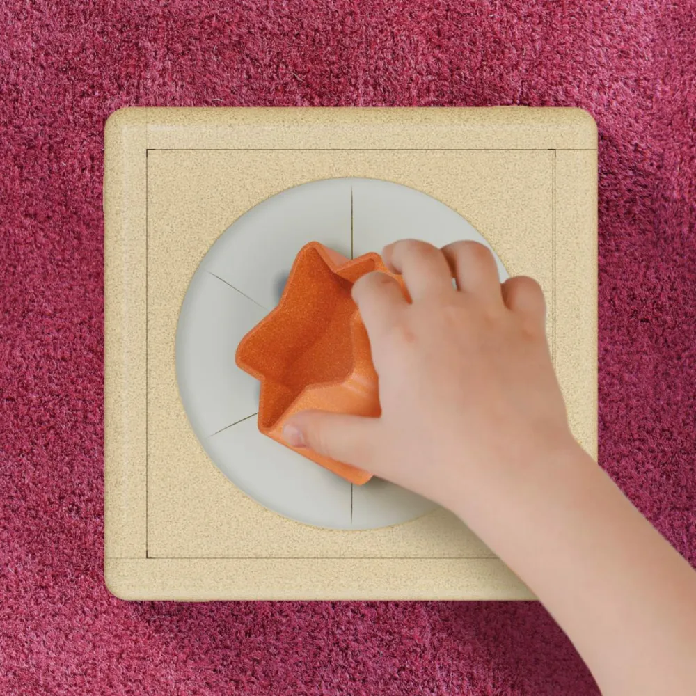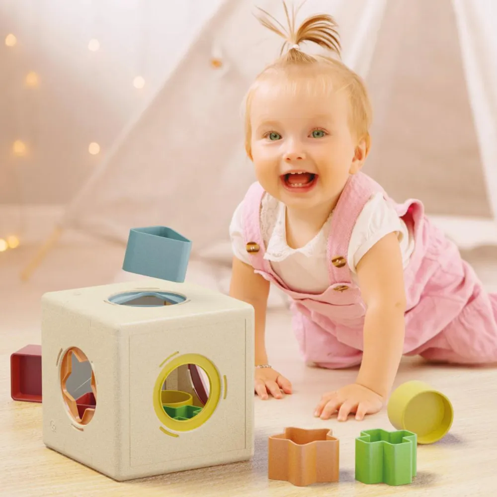 Denne puttekasse lærer i højeste grad dit barn om genkendelse og forståelse af former og farver, mens dit barn hygger sig med at få klodserne ind i kassen – og stikke hånden ind og trække dem ud igen.