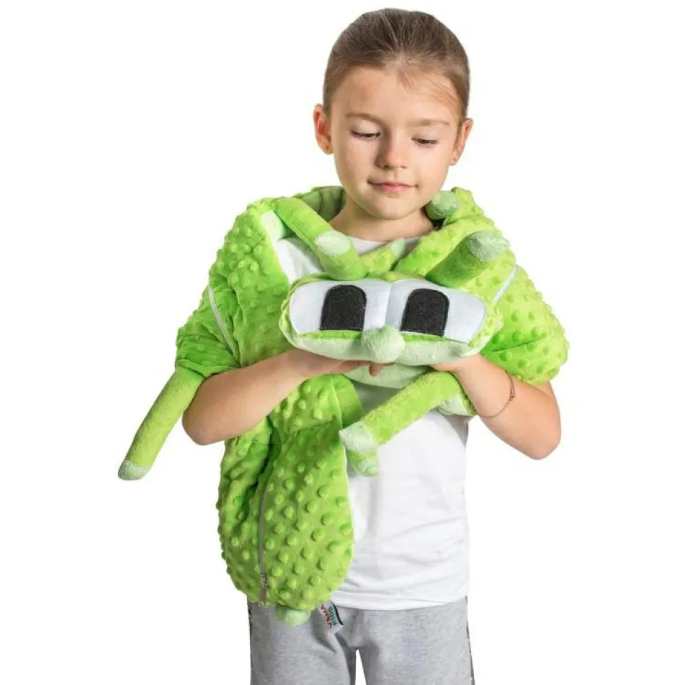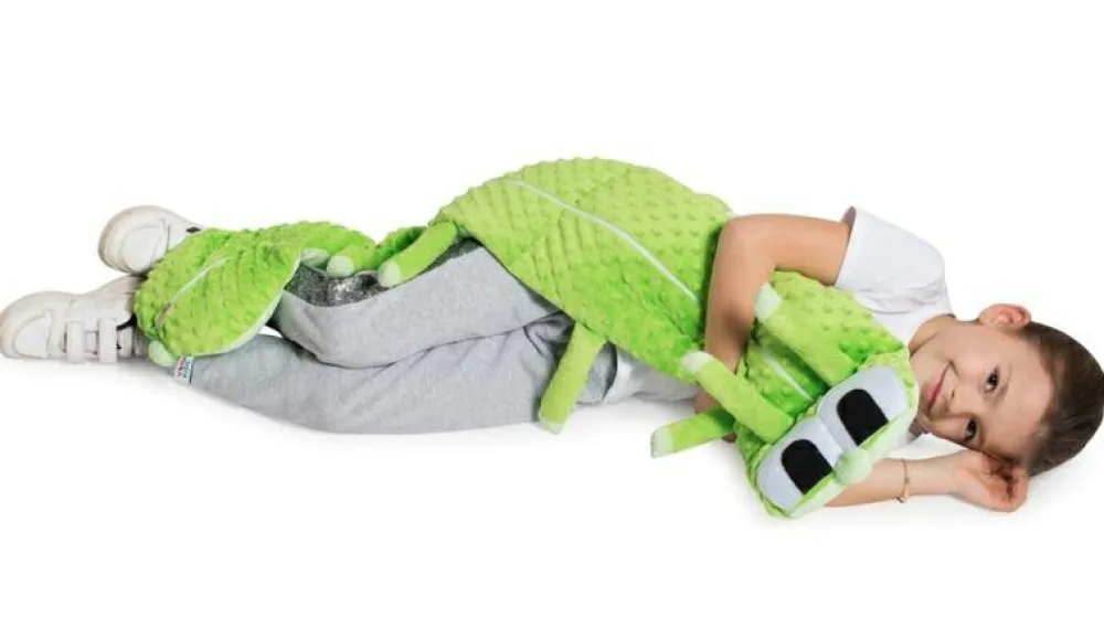 Husk: Vægtprodukter og tyngdebamser må som udgangspunkt ikke udgøre mere end 10 % af dit barns vægt, med mindre du har fået konkret vejledning og vurdering af dit barns behov. En tyngdebamse som denne larve på 2,5 kg kan derfor først anvendes, når dit barns egen vægt er mere end 25 kg.