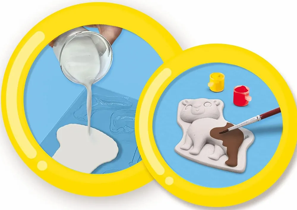 Her får dit barn en forståelse for at (være med til at) blande gips og støbe sine egne figurer, som efterfølgende kan males i de fine farver.