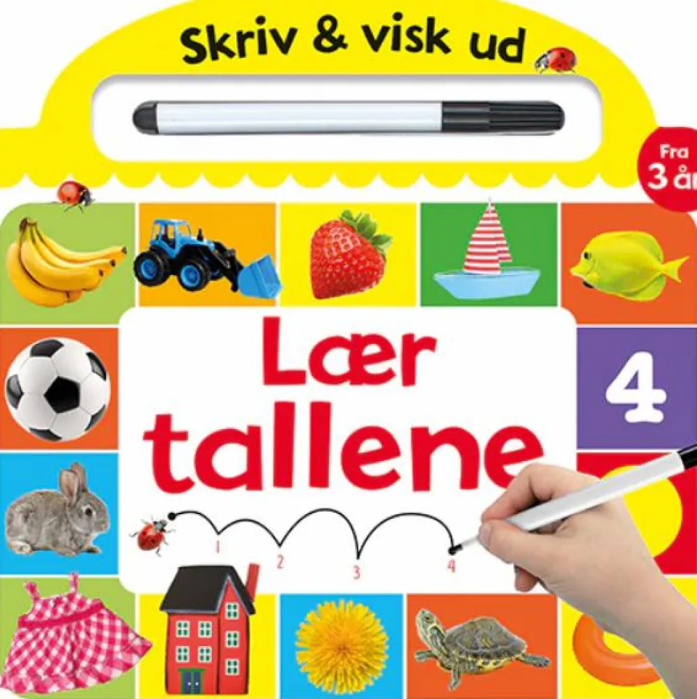 Bogen har en særlig pen, som dit barn kan tørre af igen, når sidens opgaver er løst. Så kan bogen bruges igen og igen, så længe du holder almindelige tusser væk fra bogen.