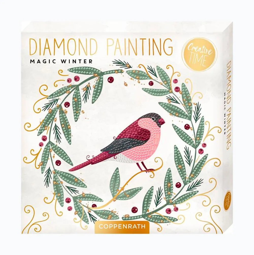 Indeholder over 3000 diamanter, to motiver, pen at dutte dem på med, beholder til de små diamanter og en vejledning til hvis du er ny i Diamond Art/Diamond painting.