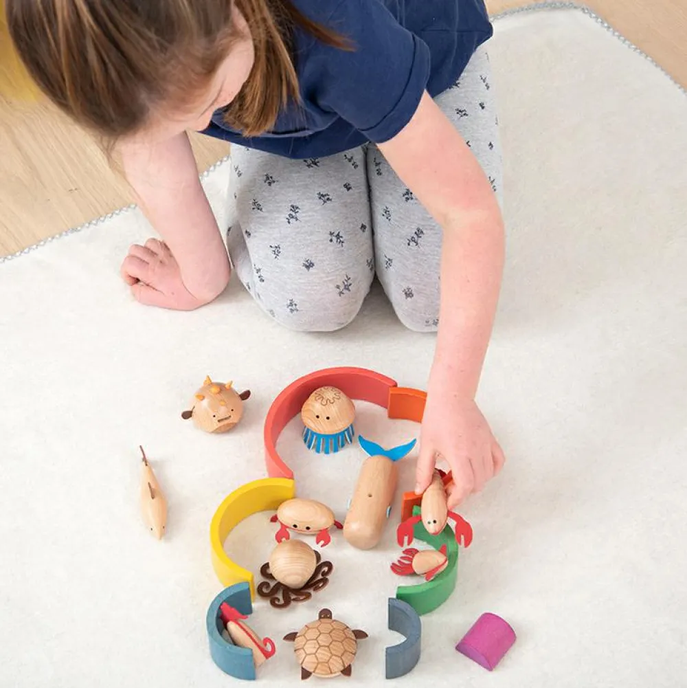 Mon dit barn starter med at bygge en verden til dyrene eller finde på en rolleleg, hvor kuglefisken og hvalen bliver bedste venner.